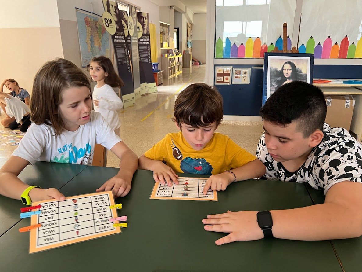 Ja hem iniciat aquest tercer trimestre de treball entre els padrins/nes i fillols/es i es nota moltíssim la feina i progressió que han fet. Ja llegim algunes frases en lletra de pal i paraules en lletra lligada.