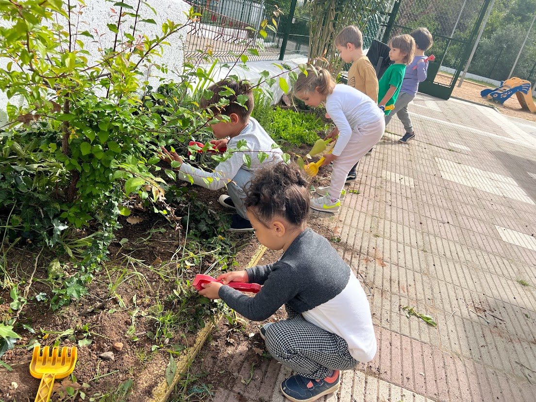 Els infants de P3 hem fet de jardiners i jardineres. Les plantes que vam plantar a la jardinera d’Infantil han crescut però les males herbes també, per això avui ens ha tocat fer una tasca molt feixuga TREURE MALES HERBES. Bufff !!! ens hem cansat de valent, però ho hem aconseguit amb l’ajut dels rasclets i de la força.