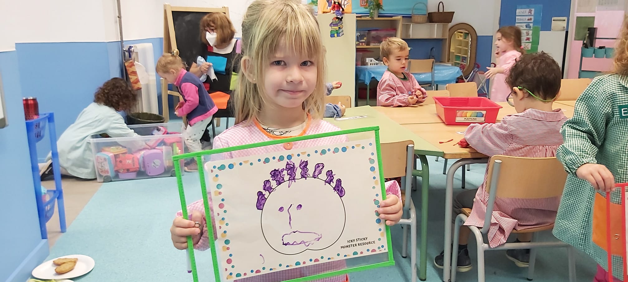 els nens i nenes de la classe dels conills ja hem començat les sessions d.anglès. I hem començat amb el conte: Go away big green monster! aprofitant que aviat serà Halloween. Us deixem l’enllaç al conte i a la cançó per si els voleu veure a casa amb els vostres fills i filles.