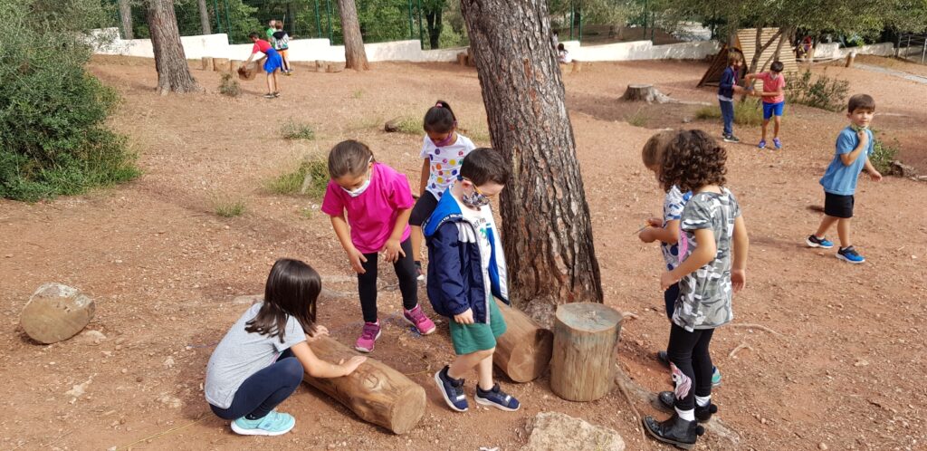 El dia anterior a petició de l’alumnat de primer, tres secretaris i secretàries de sisè van anar a la classe de primer a explicar les normes del funcionament del joc de cabanes i es van oferir per ajudar-los a construir-ne una. Com els troncs són grans i una mica pesants, els han portat rodant. Son 19 troncs que tindran pintat un senyal verd perquè tothom sàpiga que són de la cabana de primer.