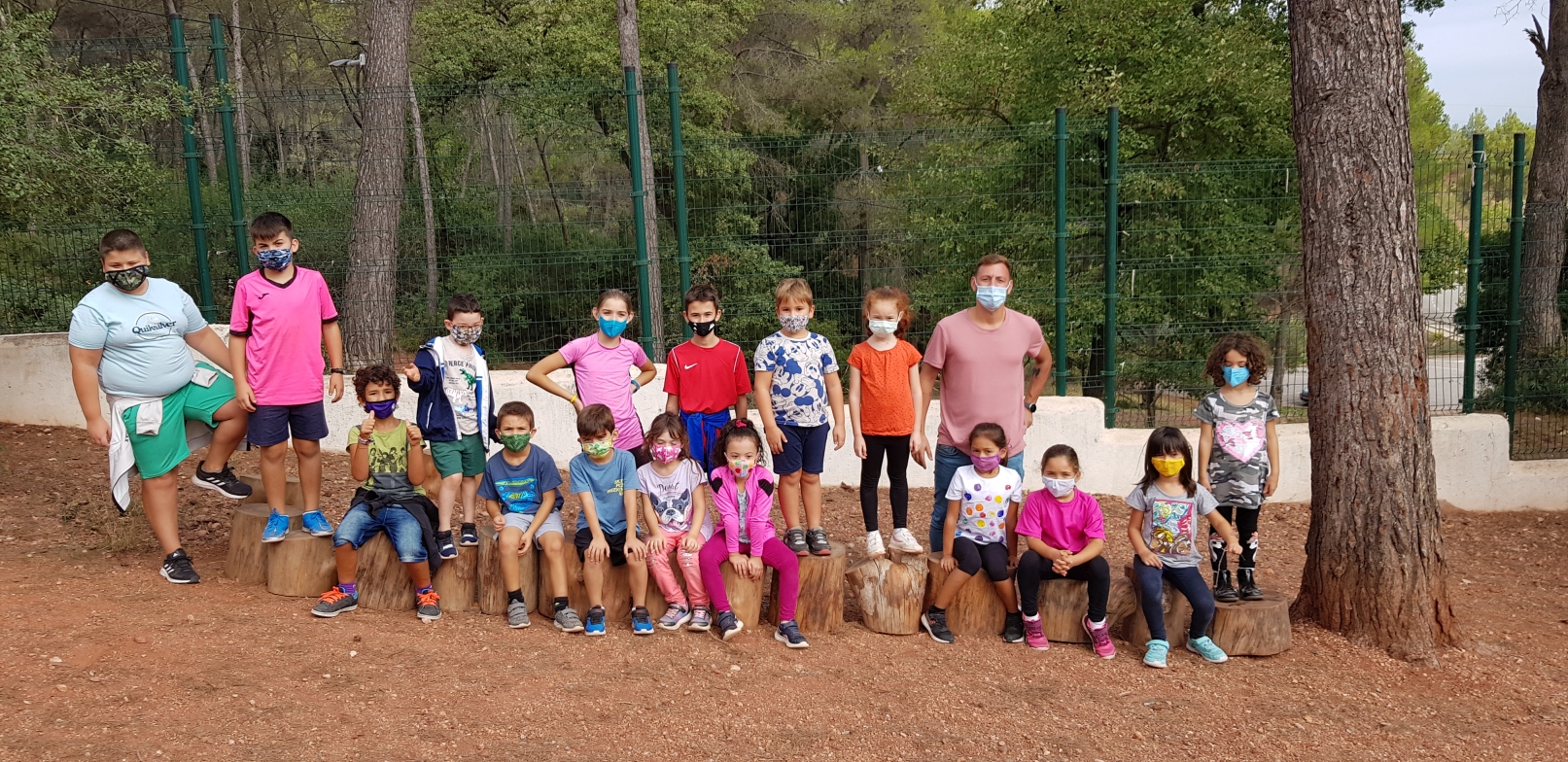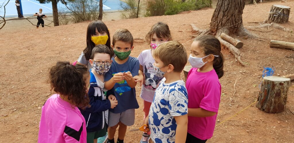 La setmana passada alguns alumnes de sisè han ajudat a l’alumnat de primer a construir la seva primera cabana a la zona del bosc del pati.