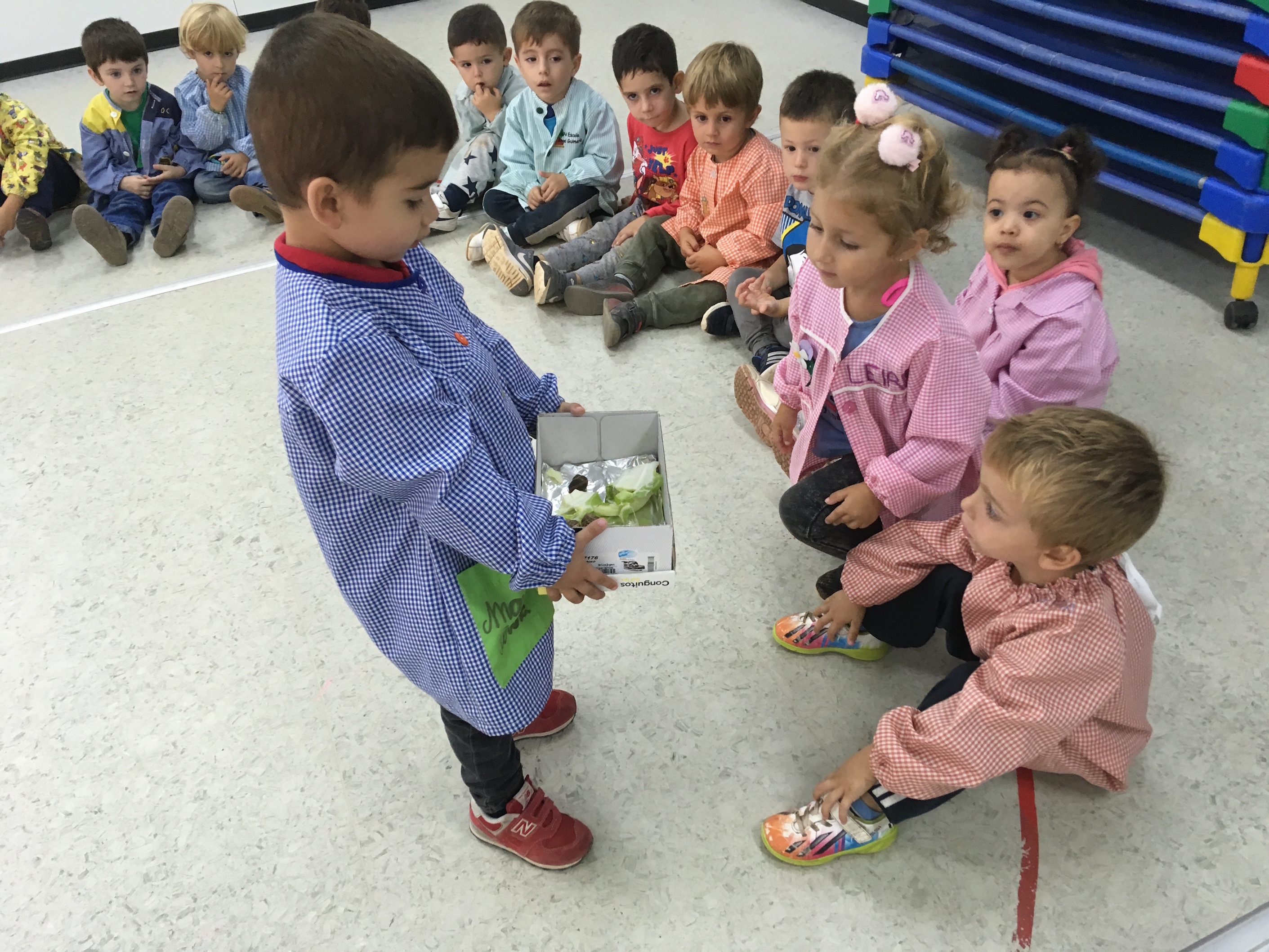 Ahir el Marc ens va portar una capsa amb cargols. Ens va explicar que els havia trobat a la muntanya i que mengen enciam i verdura.