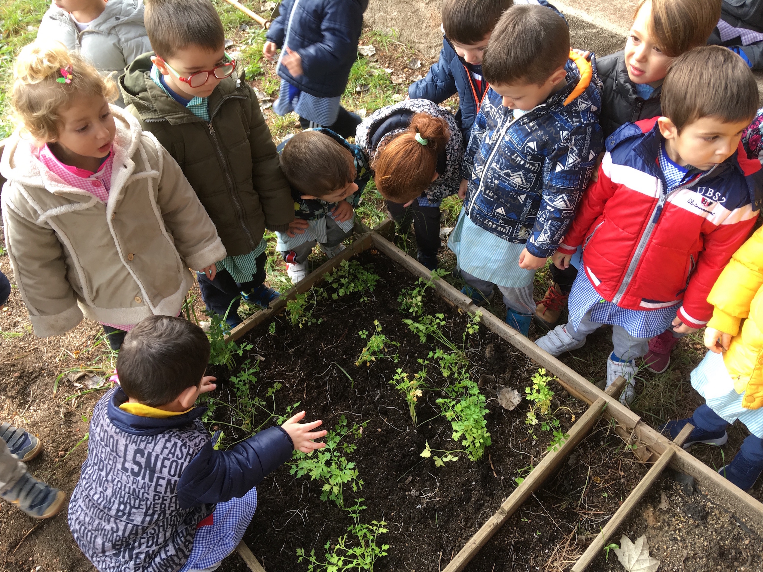 Els nens i nenes de P3 vam plantar julivert.