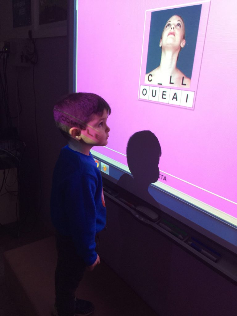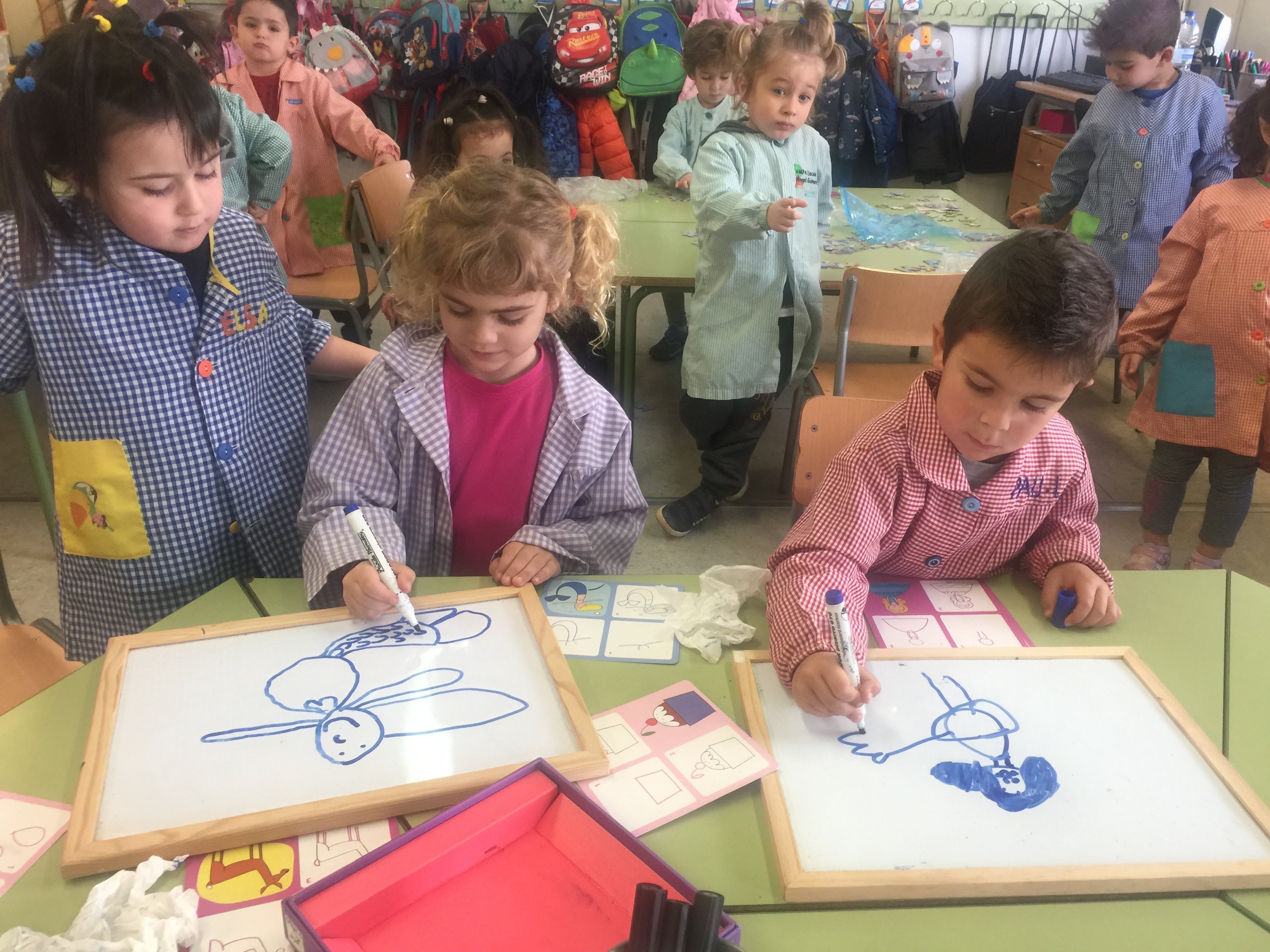 També hi ha fotos fent activitats de lectoescriptura.
