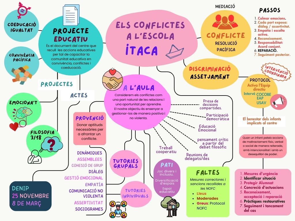 El nostre projecte d’innovació educativa La Coeducació com a marc imprescindible per a la convivència té com a objectiu global educar en la igualtat nens i nenes i la preparació per a la resolució pacífica dels conflictes com a fórmules bàsiques per a la convivència i la prevenció de la violència. Volem ajudar el nostre alumnat a construir relacions igualitàries basades en el respecte i la capacitat d’analitzar els conflictes i elaborar estratègies no sexistes i no violentes per resoldre’ls.