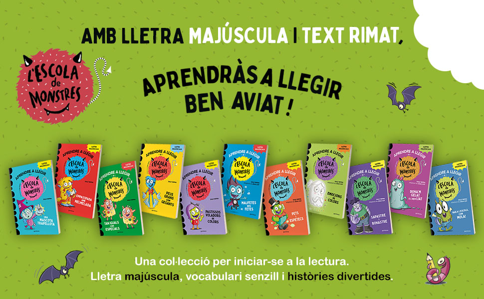 i per acabar …..us recomanem L’ESCOLA DE MONSTRES! una proposta per a que l’inici a la lectura amb els vostres fills i filles sigui d’allò més divertit. L’escola de monstres és una col·lecció amb lletra majúscula i text rimat on aprendran a llegir amb les aventures dels protagonistes. Els tenim a la biblioteca de l’escola!