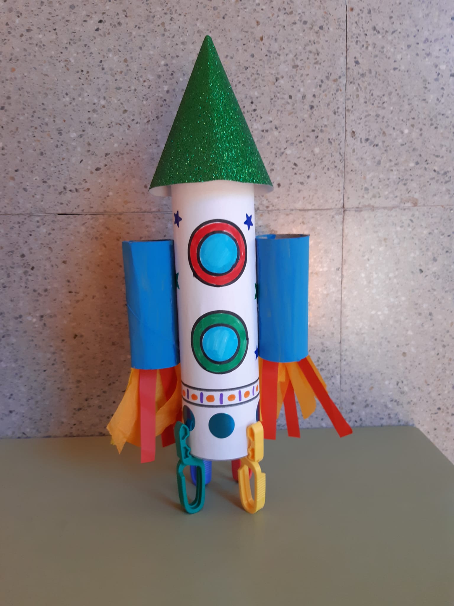 ELABORACIÓ D’UN COET: Hem construït un preciós coet, emprant materials i tècniques plàstiques diverses, que de ben segur farà possible que la imaginació dels infants s’enlairi FINS L’INFINIT I MÉS ENLLÀ!