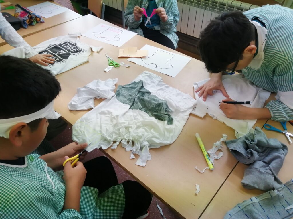 Però durant aquesta segona quinzena de març també hem fet altres activitats molt interessant i totes elles seguint sempre el fil conductor dels oceans i el respecte pel medi ambient. És així com fa uns dies vam visitar la biblioteca de Tàrrega on ens van explicar un conte molt il·lustratiu sobre el possible futur dels oceans i ens van deixar consultar bibliografia relacionada amb el nostre projecte, contes i altres llibres. Per acabar-ho d’arrodonir, la setmana passada vam tenir la gran sort de rebre la visita d’una artista de la ciutat, la Lluïsa Gabarra, que ens va ensenyar a cuidar del medi reutilitzant roba vella i, atenció, vam convertir una samarreta en una bossa super xula!!!