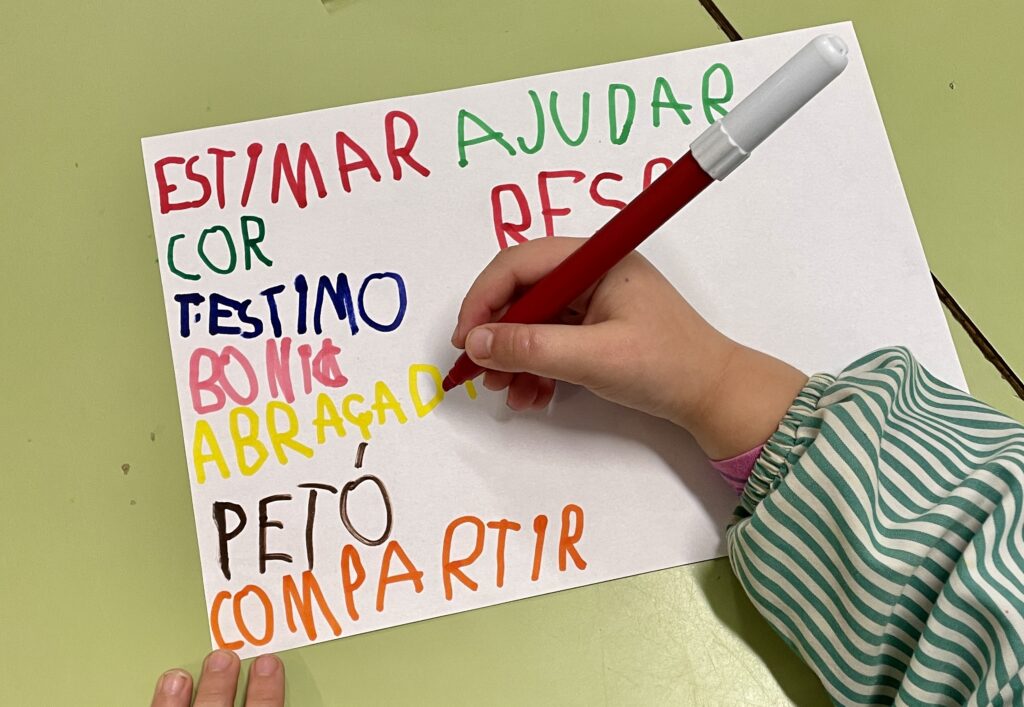 El dia 30 de gener és el dia de la Pau i els nens i nenes d’I4 hem reflexionat sobre què significa fer la pau tot escrivint un llistat de paraules boniques que ens ajuden a fer la pau com per exemple; respectar als companys/es, ajudar-nos els uns als altres, fer-nos petons i abraçades, demanar perdó, compartir les joguines, dir t’estimo, etc.
