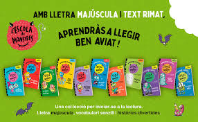 L’escola de monstres és una col·lecció amb lletra majúscula i text rimat on aprendran a llegir amb les aventures dels protagonistes.