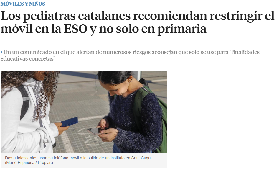 1. Notícia: “Los pediatras catalanes recomiendan restringir el móvil en la ESO y no solo en primaria”
