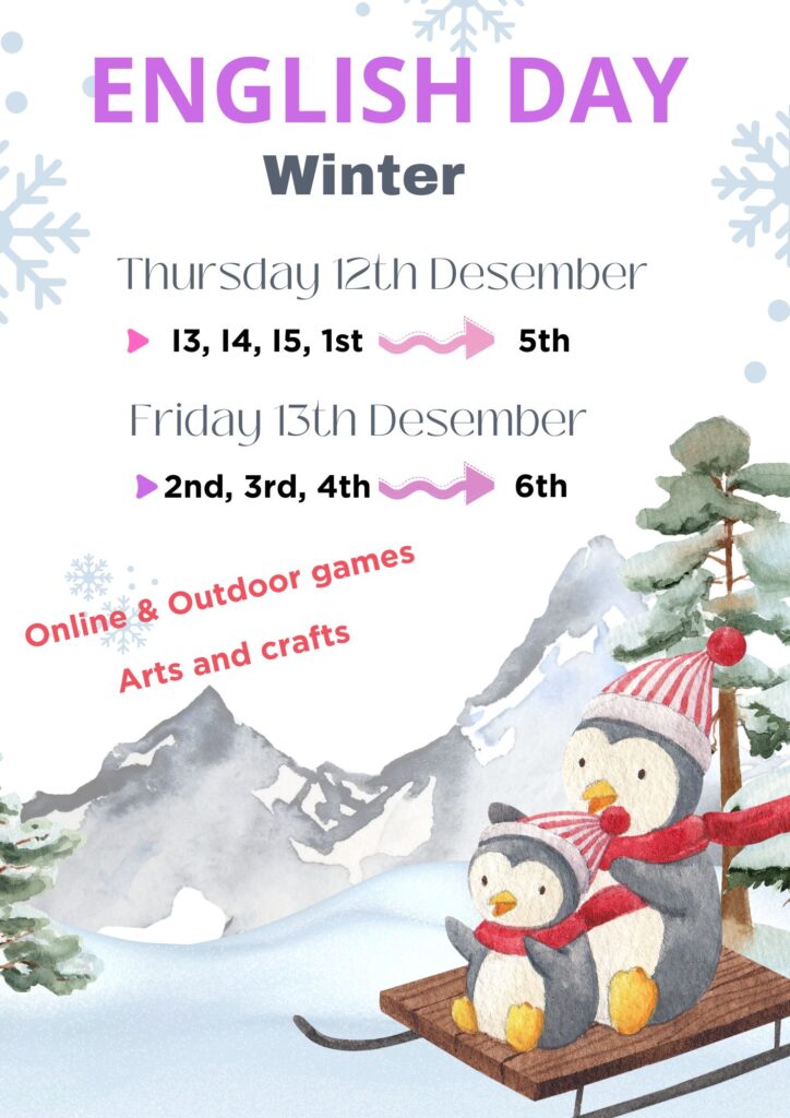 HELLO FAMILIES!!! Com els darrers cursos, hem celebrat el 1r English day a l’escola. Aquesta vegada, els alumnes de Cicle Superior, van dinamitzar les activitats preparades per practicar i enriquir el seu aprenentatge en aquesta llengua. El fil conductor de la jornada era treballar el CHRISTMAS utilitzant com a llengua de comunicació l’ENGLISH.   WE