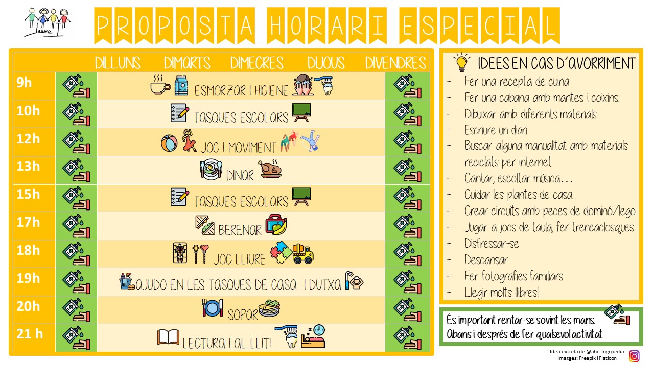 És per això que hem preparat un petit horari i algunes idees per passar aquests dies a casa.