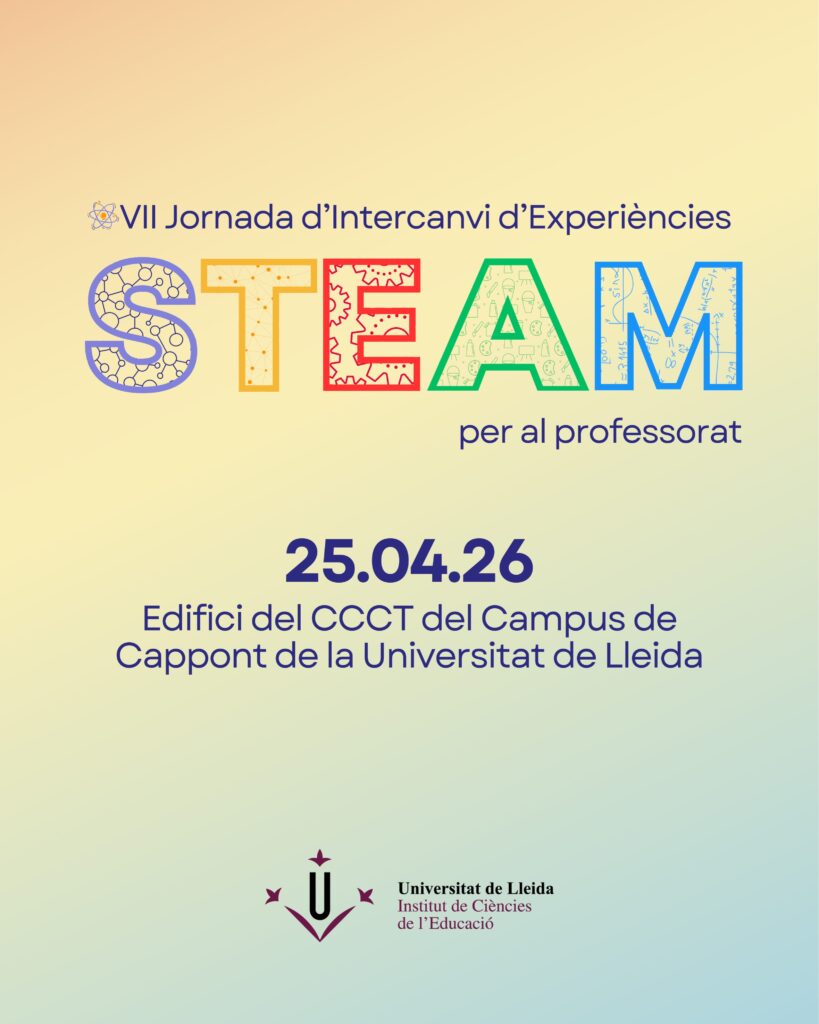 Ahir dissabte, 25 d’abril, al matí, va tenir lloc al campus de Cappont de la Universitat de Lleida la VII Jornada d’Intercanvi d’Experiències STEAM per al professorat, activitat formativa en la que novament va participar el nostre centre.