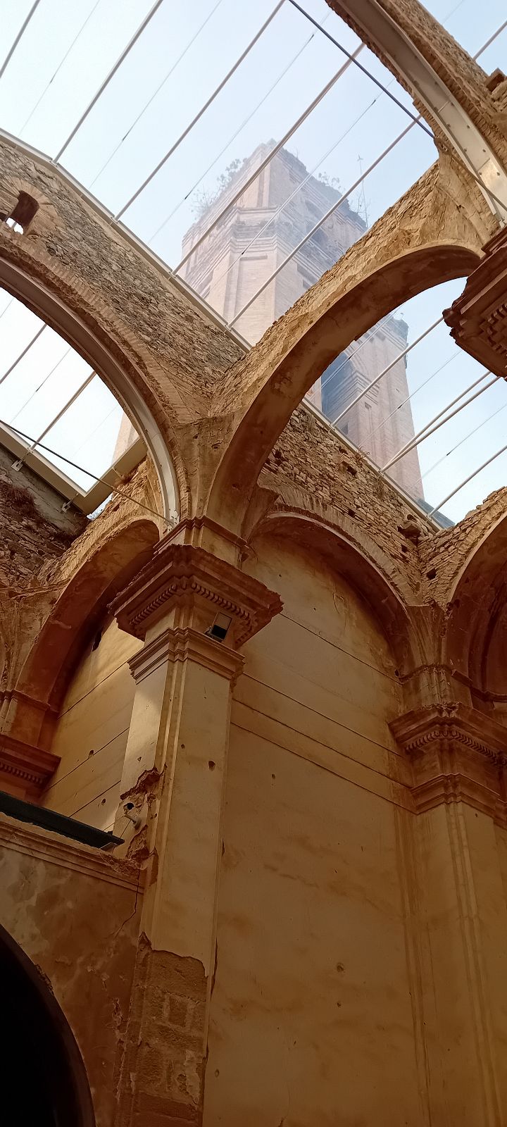 Després vam visitar el Poble Vell, el que està damunt del turó de la Montera i que està totalment destruït, a excepció de l’església de Sant Pere. Hi ha moltes coses per veure i totes són prou impactants. El que més ens va agradar va ser passejar pels carrers destruïts i, dintre de l’església, una maqueta i una campana fet de les restes d’un projectil.