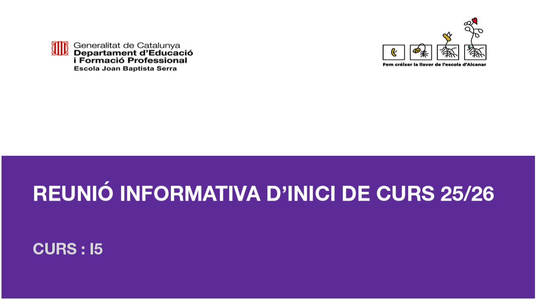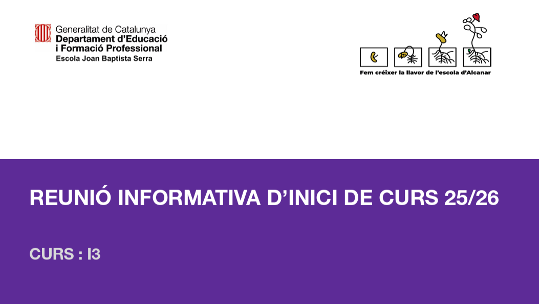REUNIONS INICI DE CURS 2025-2026 Feu un comentari / Per admin / 10 d'octubre de 2025 / General Infantil Portada Primària REUNIÓ I3 REUNIÓ I4 REUNIÓ I5 REUNIÓ 1R REUNIÓ 2N REUNIÓ 3R REUNIÓ 4T REUNIÓ 5T REUNIÓ 6T