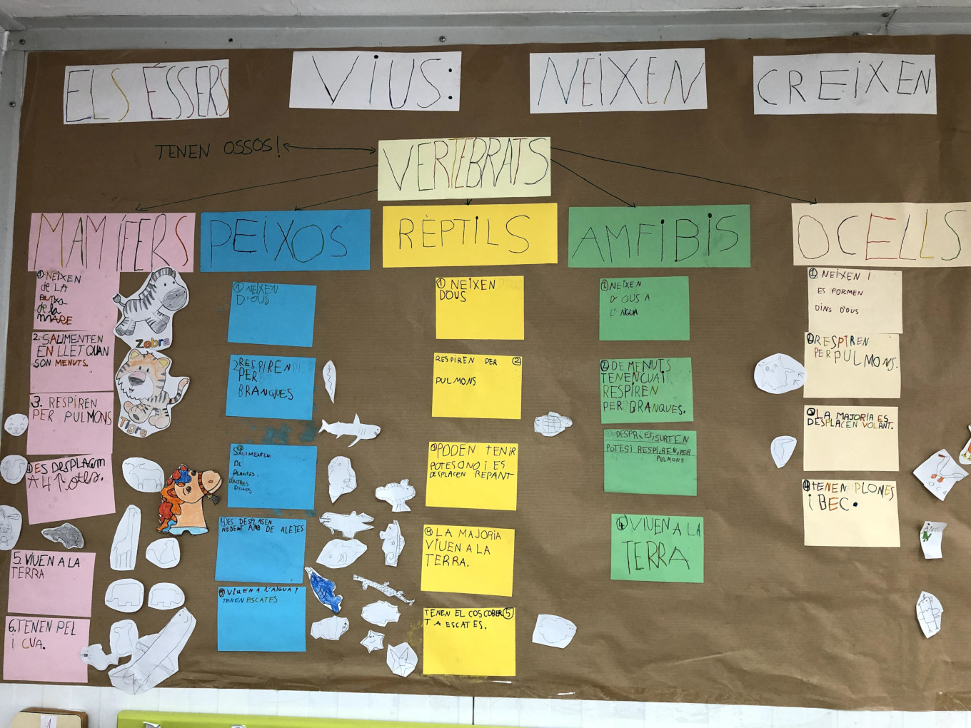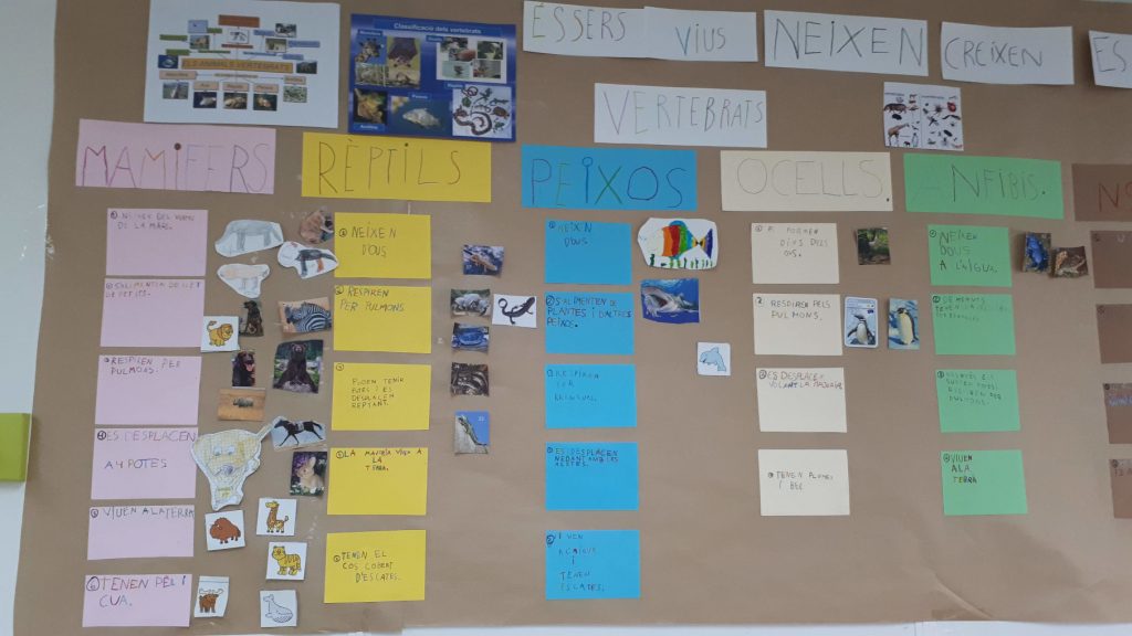 Aquest primer trimestre a medi ens ha tocat treballar el tema dels animals. N’hi ha molts o sigui que ens hem posat a classificar-los tal i com ens explicava el llibre de text. Hem fet un treball cooperatiu on hem treballat els següents objectius: