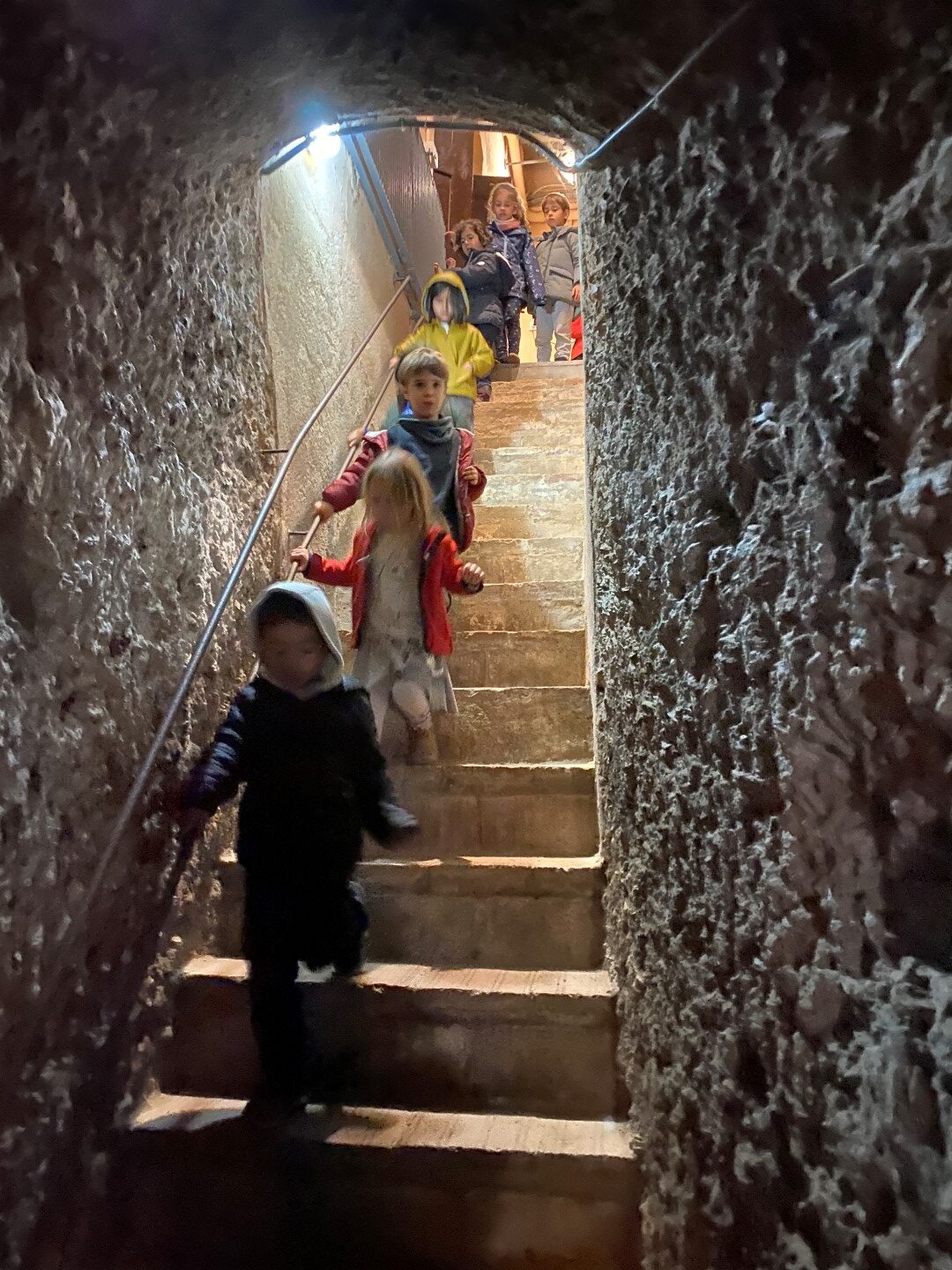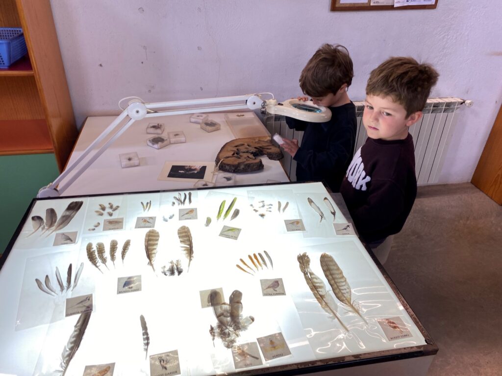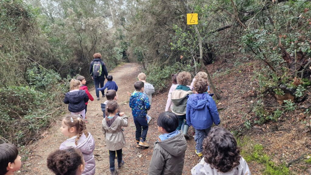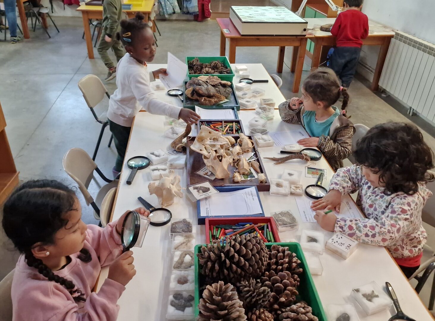 A més a més, un grup va fer una excursió pel bosc de Can Coll, l’excursió dels sentits. Vam poder tocar, olorar, mirar i sentir la natura que ens envoltava i, a més, teníem moltes ganes de trobar pistes per descobrir si hi havia passat algun animal: pinyes rossegades, petjades… També estàvem molt interessats en la diversitat de minerals que anàvem veient; n’hi havia un que semblava un fòssil de peu de dinosaure!