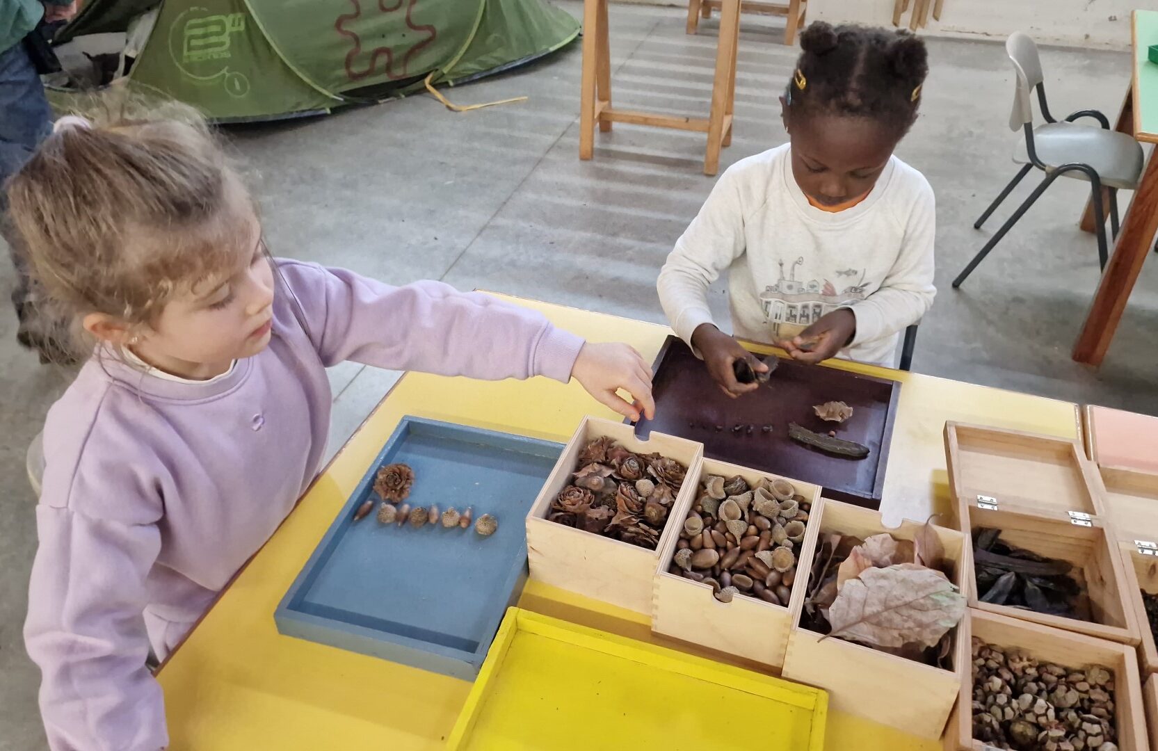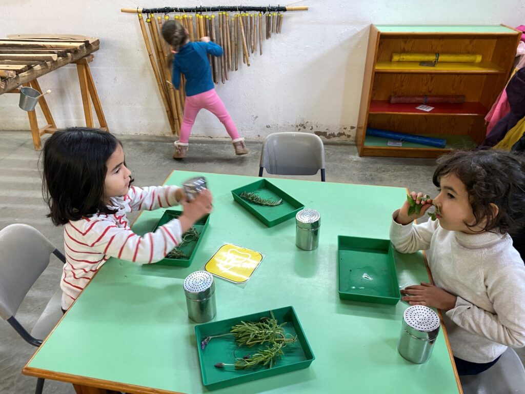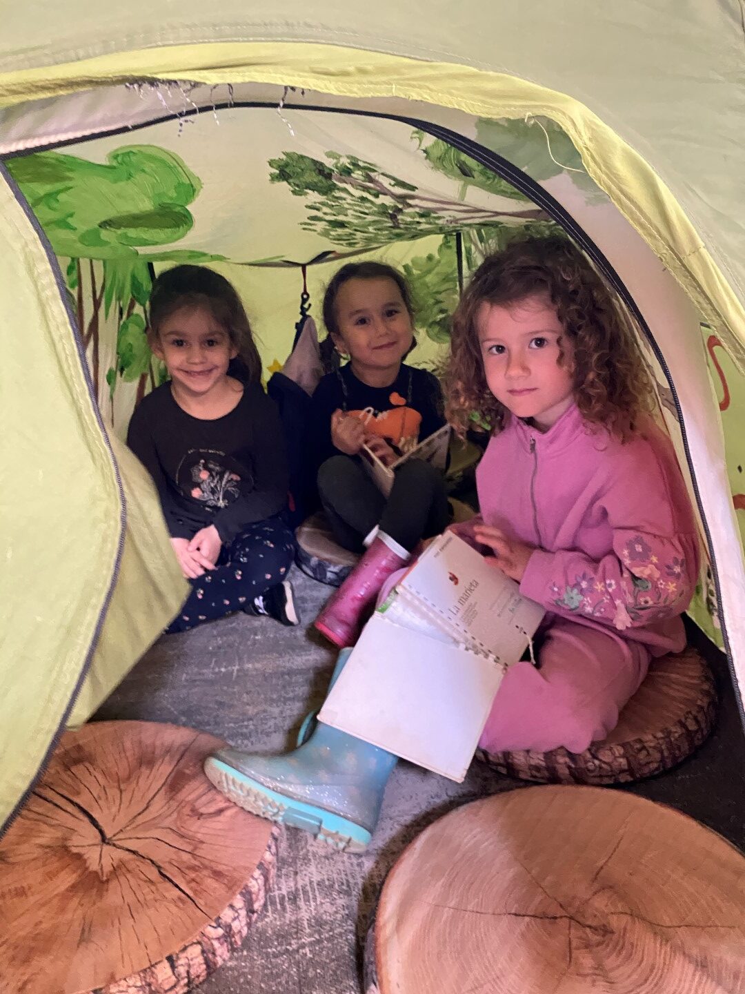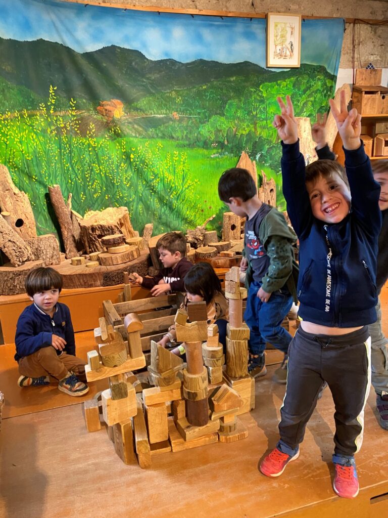 Un cop allà, vam anar a la “Casa dels Petits” a fer l’activitat “Descobrim el bosc”. Hi havia propostes fetes amb diversos elements del bosc que ens convidaven a fer creacions efímeres, a construir amb seccions de troncs i fustes de diferents formes i mides, a imprimir petjades dels animals del bosc de Collserola, a observar amb lupes de gran augment plomes i altres restes d’animals i vegetals del bosc i a dibuixar les nostres observacions, a olorar i reconèixer plantes aromàtiques, a fer música amb fustes de diferents llargades i pals de pluja…, a mirar llibres sobre el bosc dins una tenda de campanya…