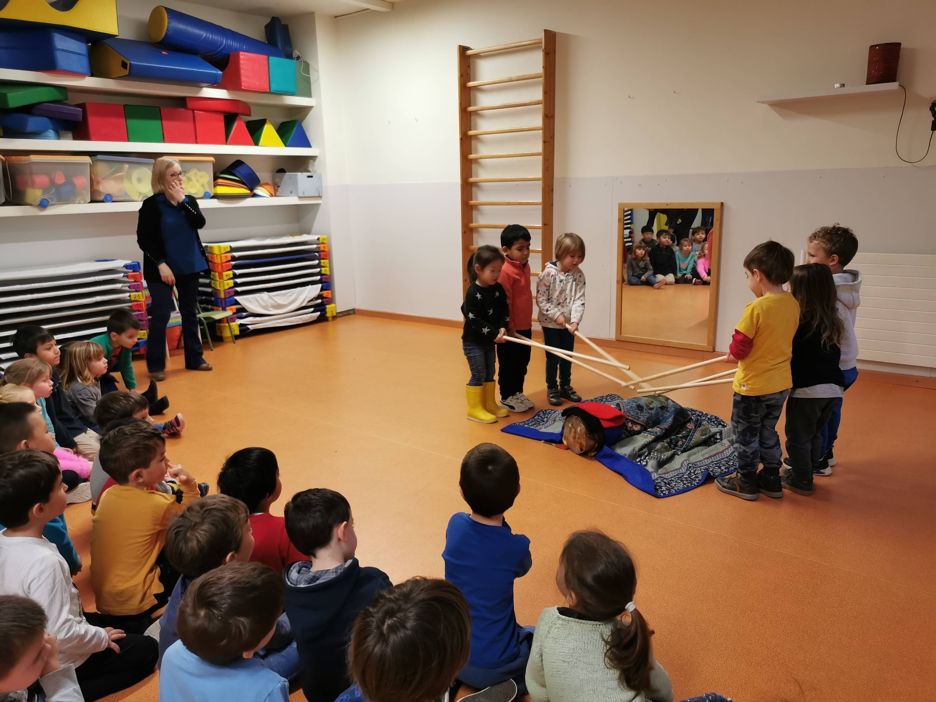 Abans de les vacances de Nadal va arribar el tió a l’escola. El vam tenir una setmana i el vam cuidar molt tapant-lo i donant-li menjar. Finalment el vam fer cagar tot cantant una cançó i en aixecar la manta… Quina sorpresa!!! Ens va cagar neules i torrons!!!