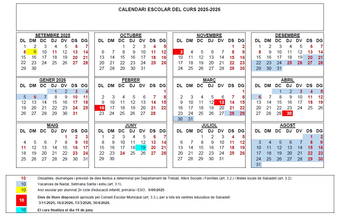 Nadal: Del 20 de desembre de 2025 al 7 de gener de 2026 (ambdós inclosos)