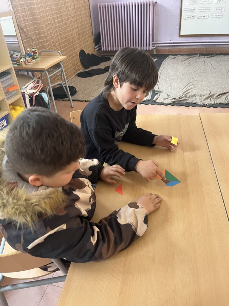 Els nens i nenes de 2n gaudeixen fent reptes matemàtics en parelles. Aquestes últimes setmanes han fet un dictat geomètric per parelles i ahir van haver de resoldre un sudoku de colors amb cubets encaixables. Va ser molt divertit poder resoldre els reptes amb els seus companys/es i es van posar molt contents quan ho van aconseguir!
