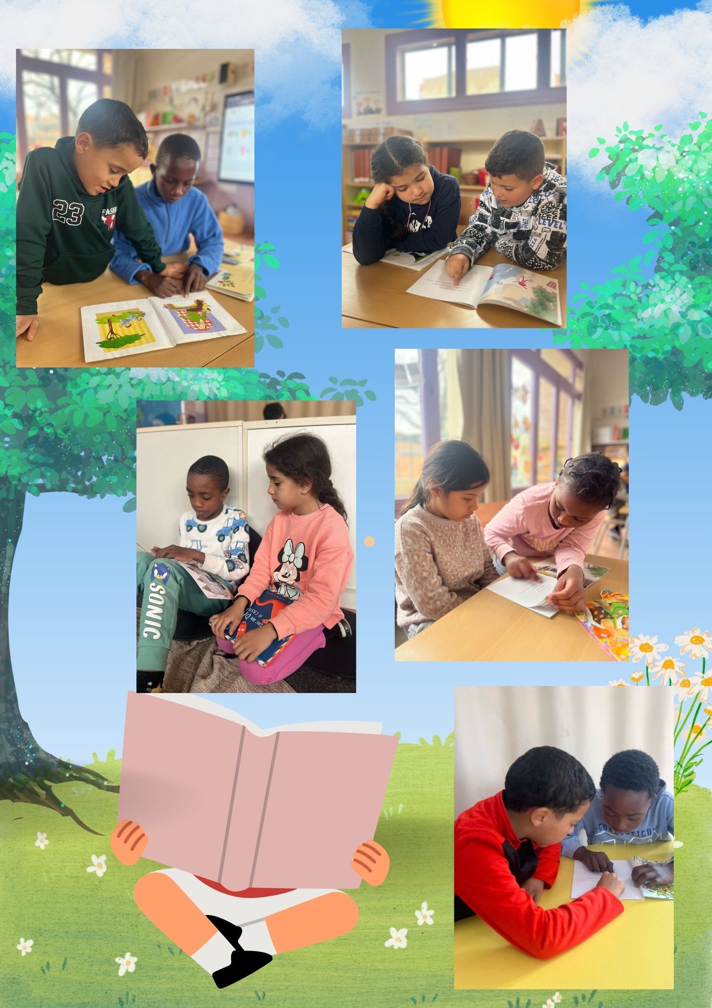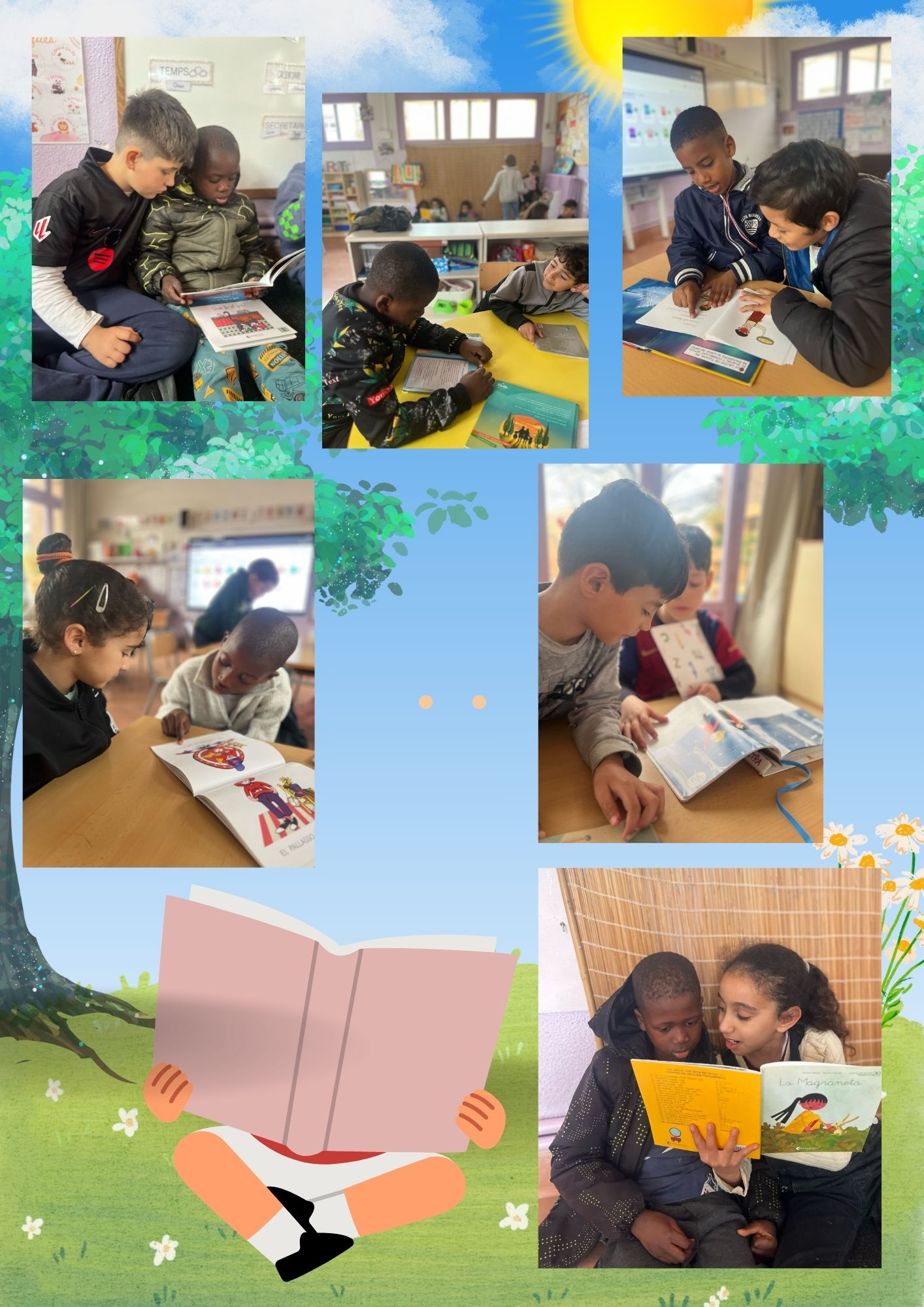 El passat divendres els nens i nenes de 2n i 3r van fer lectura per parelles, barrejant nens i nenes de 2n amb 3r per tal que es poguessin ajudar mútuament i gaudir d’una bona estona de lectura.