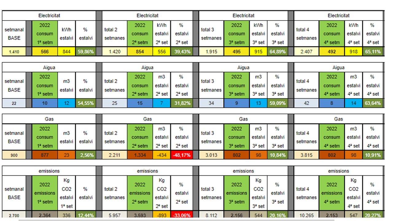 Ja tenim els resultats finals de la Marató de l’energia d’aquest any! Ens han sortit molt bons resultats en tot allò que nosaltres podem controlar des de l’escola. Els resultats en vermell que són el gas i les emisions són aspectes que depenen de l’ajuntament i nosaltres no tenim control.