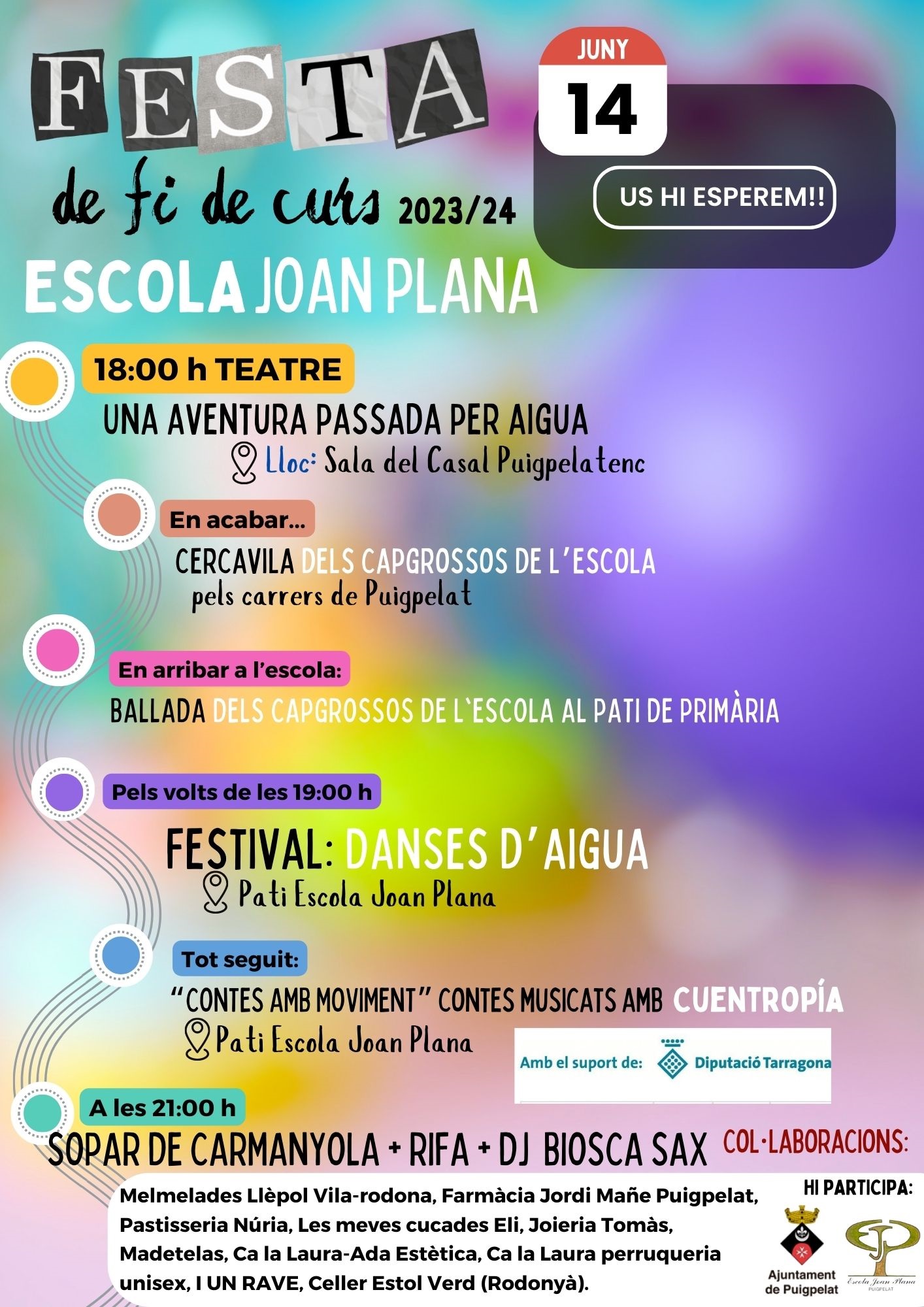 29/02/24Ja fa uns dies de la celebració de la setmana de Carnaval a l’escola; vam complir les consignes del rei Carnestoltes fil per randa i ens vam cruspir la coca de llardons. I, el divendres, l’esperada rua de carnaval pels carrers de Puigpelat fent gresca i xerinola!