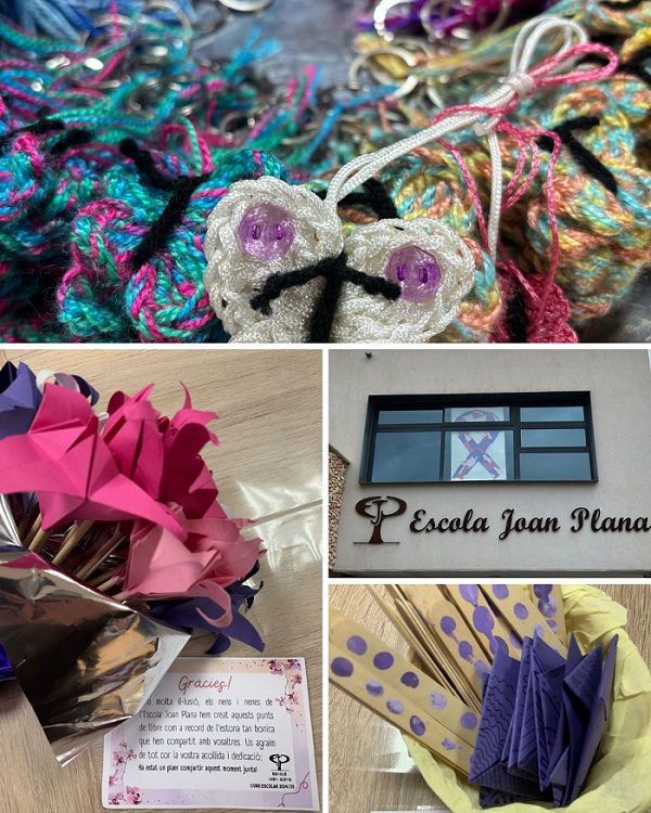Els infants també han pogut fer entrega d’uns punts de llibre fets per ells mateixos i d’un ram d’orquídies d’origami com a mostra d’agraïment. Per la seva banda, l’associació ens ha obsequiat amb un exemplar del llibre i ha regalat a l’alumnat unes boniques papallones de ganxet en forma de clauer, un símbol per recordar-los que poden volar ben alt i aconseguir tot el que es proposin.