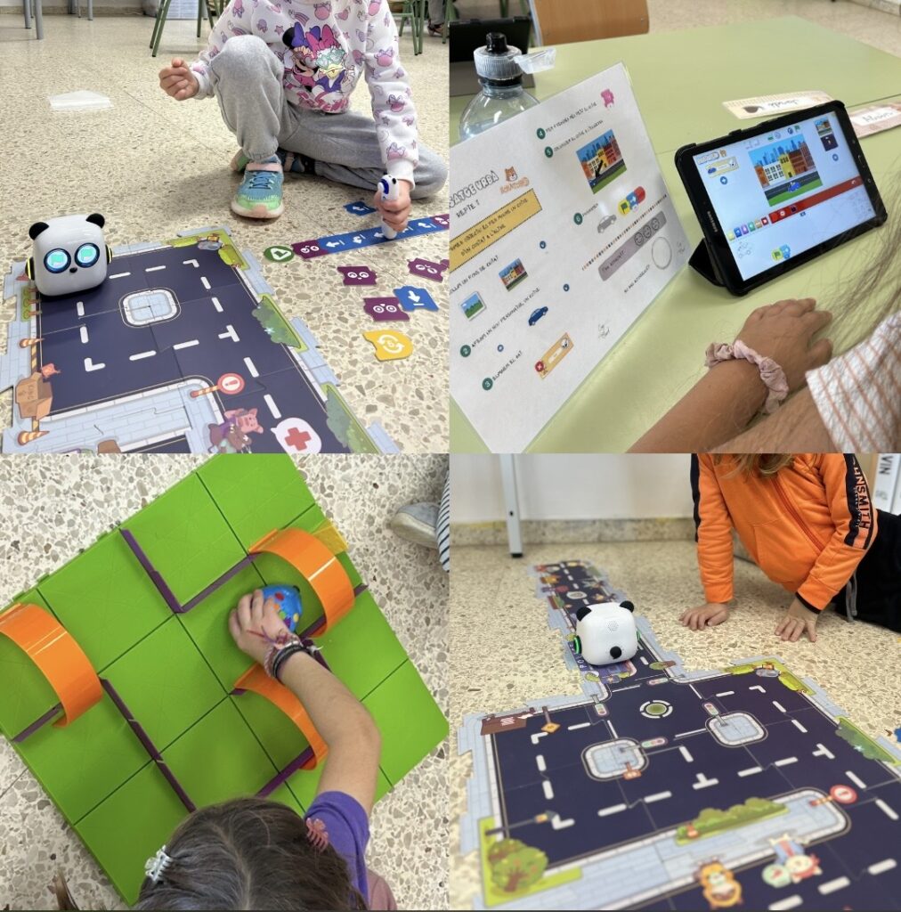Robòtica: El taller de robòtica és un espai d’aprenentatge actiu on els infants descobreixen el món de la programació i el pensament computacional d’una manera lúdica i manipulativa. A través del joc, experimenten, proven, s’equivoquen i tornen a intentar-ho, desenvolupant habilitats essencials per al seu aprenentatge. Durant el taller treballem la lògica, la resolució de problemes, l’orientació espacial, la creativitat i el treball cooperatiu. Els infants aprenen a planificar seqüències, donar instruccions clares i anticipar resultats, tot reforçant l’autonomia i la confiança en les seves capacitats.