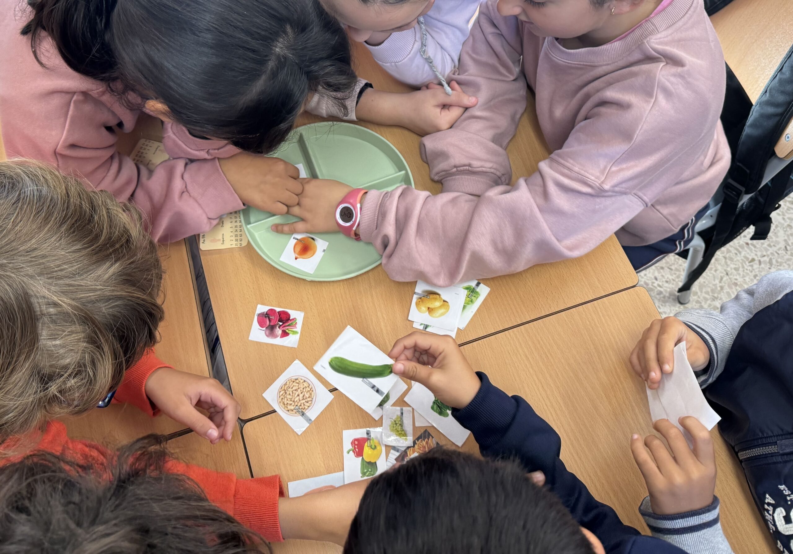 Els més petits de l’escola van descobrir per què necessitem alimentar-nos bé i quins beneficis ens aporten els aliments. Un conte els va ajudar a conèixer curiositats de la fruita i la verdura, i després van jugar classificant aliments en una broqueta de fruites i una pizza de verdures. Per acabar, van gaudir d’un tastet de mandarina.