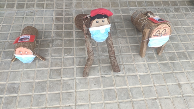 Aquest matí hem sentit un soroll ben estrany a les nostres aules i quan hem mirat al pati…allà els hem trobat! Tres Tions que ens esperaven per venir a les nostres classes.