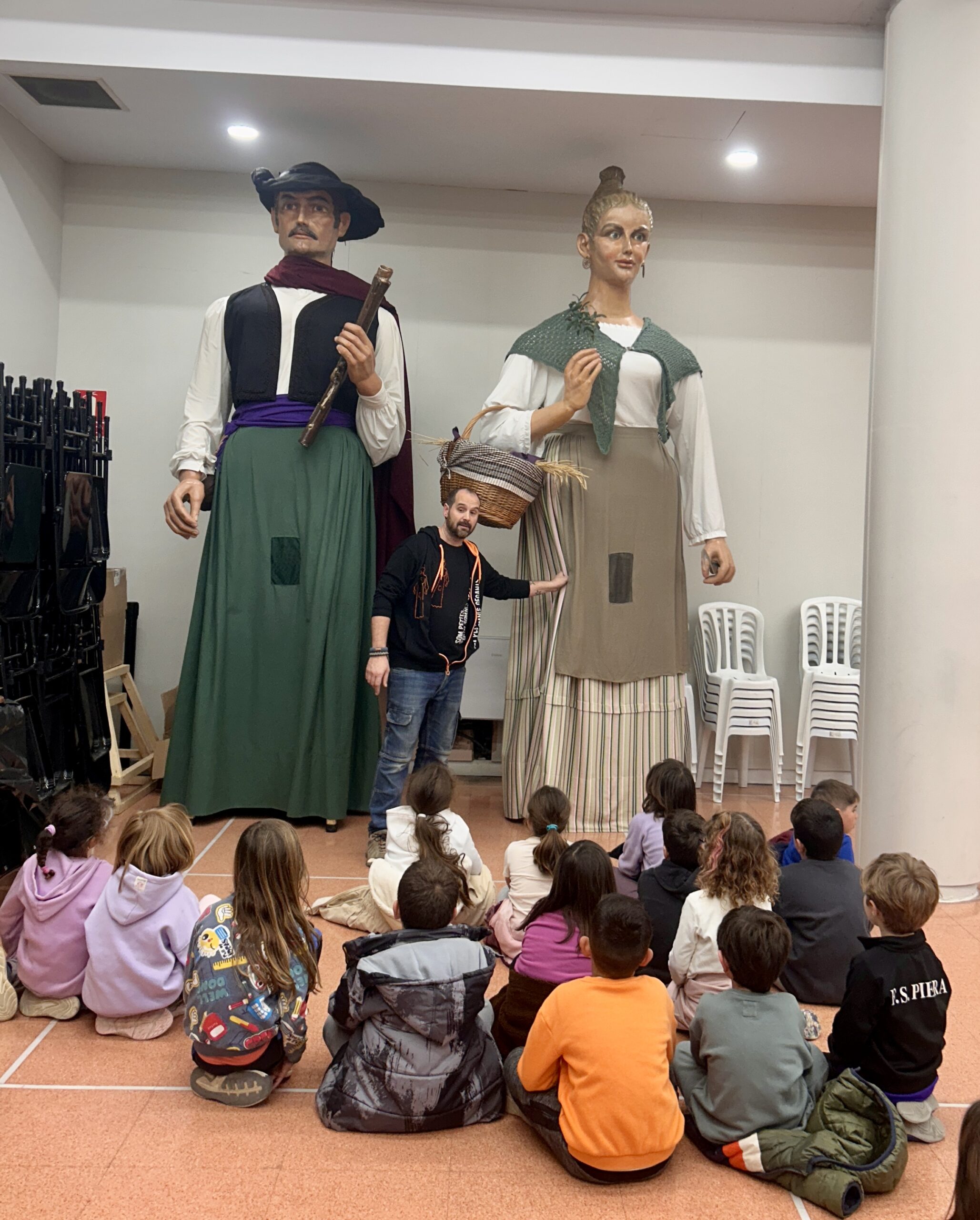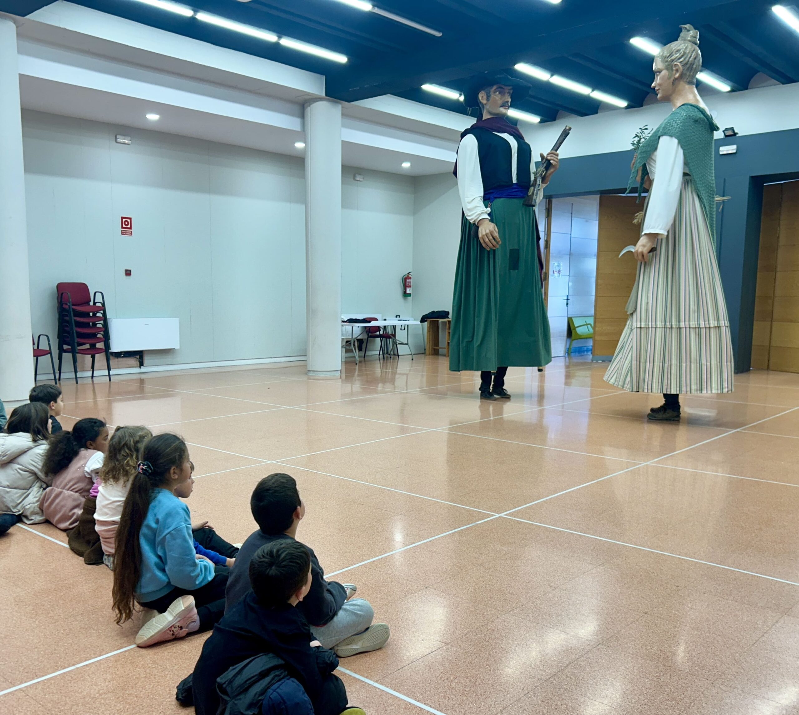 Però una de les experiències més boniques ha estat la sortida a la sala de l’Ajuntament. Gràcies a la família del Liam de 2n, que ens ha facilitat aquesta oportunitat, vam poder entrar-hi i descobrir-los de ben a prop. Allà vam conèixer els gegants del poble, la Carol i el Soldó, i vam tenir la sort de veure com els feien ballar. A més, volem agrair també la participació dels alumnes Ton i Elna de 5è, que van venir a tocar la gralla i la caixa, fent possible una petita demostració que ens va fer sentir com si estiguéssim en plena festa.