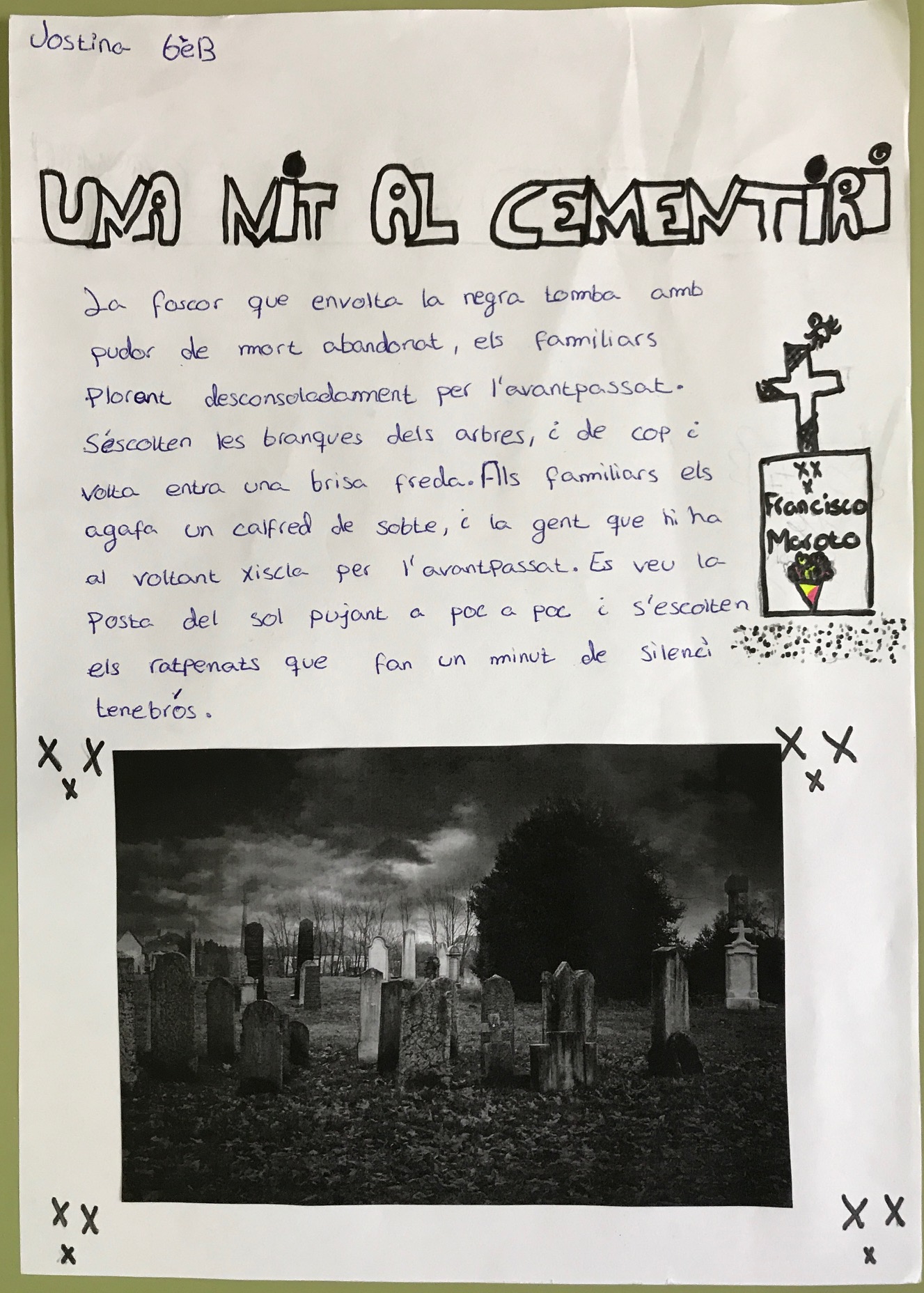 Els dos textos guanyadors d’aquesta setmana descriuen un cementiri i les sensacions que aquest provoca. Enhorabona Judith i Jostina!