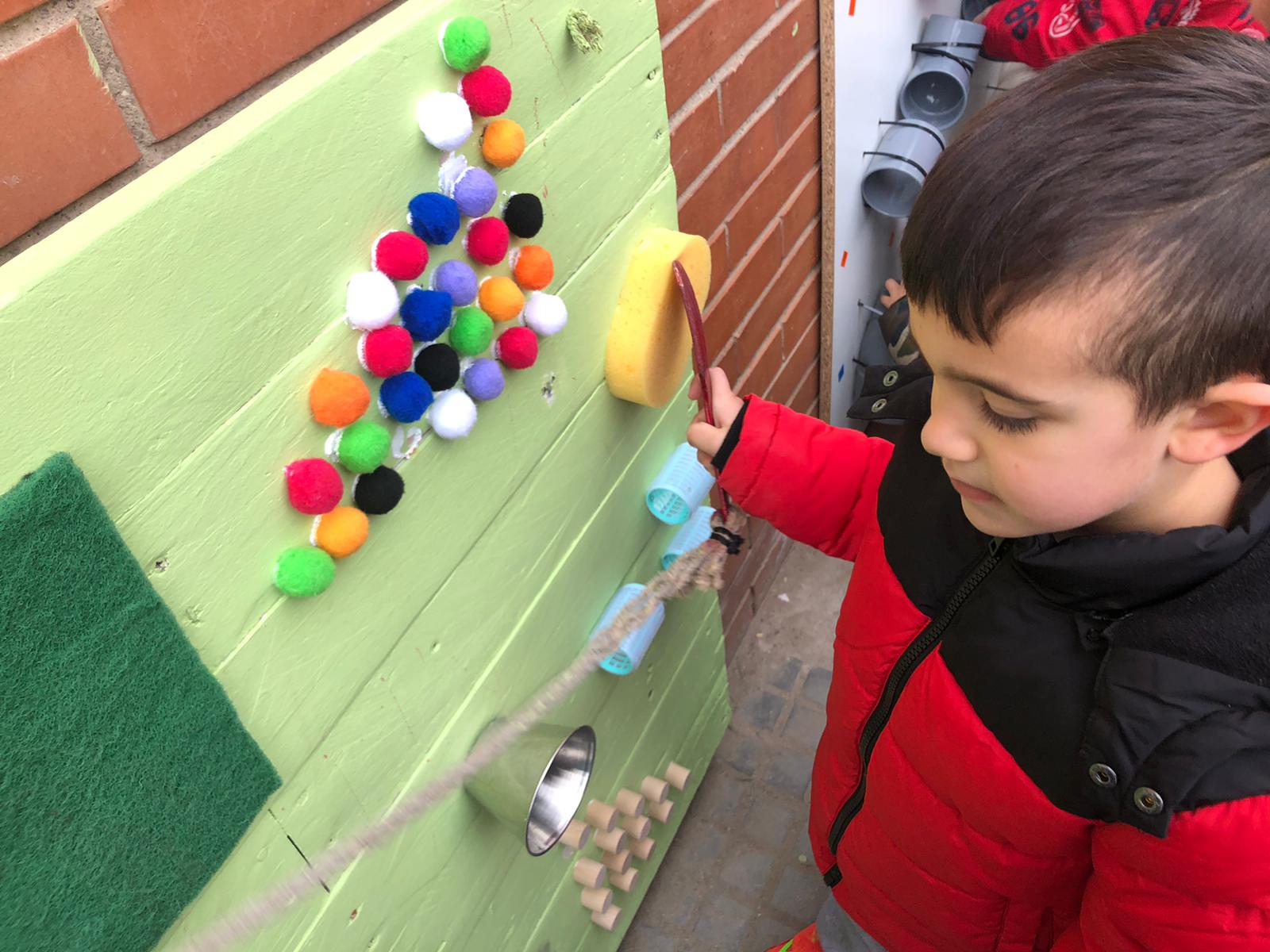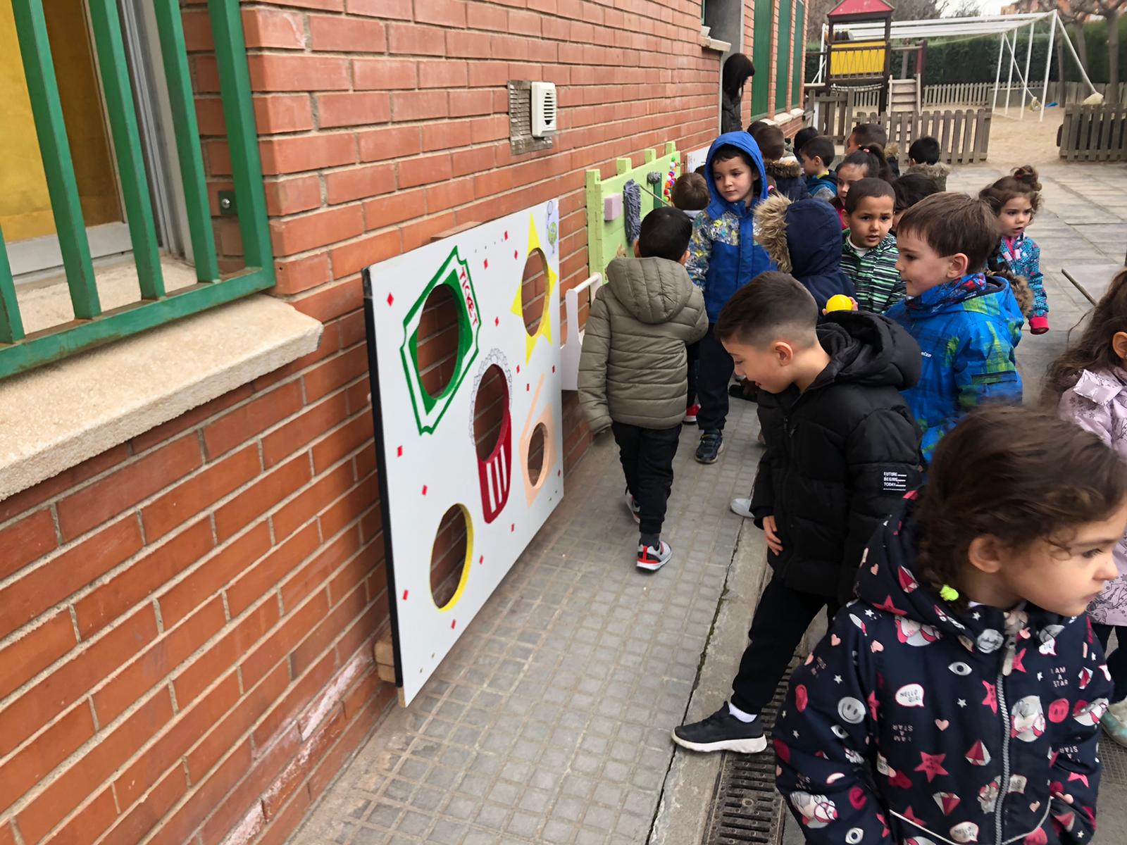 En el seu APS (Aprenentatge i Servei) han organitzat en el pati de P3 i P4 uns espais per a l’experimentació lliure dels més petits. Els han ofert la possibilitat de conèixer diferents textures, fer hipòtesi i comprovar per on sortiran les boles dels circuits, treballar la seva consciència corporal amb el llançament de boles. Fins i tot han dinamitzat normes de convivència a l’hora d’esperar el torn al jugar a les tres en ratlla. Aquestes propostes poden servir tant com a activitats lliures a l’hora de l’esbarjo com per a activitats dinamitzades i guiades per les mestres d’infantil.