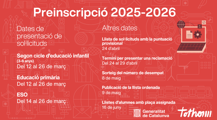 Les dates de presentació de sol·licituds per a l’escola són del 12 al 26 de març.