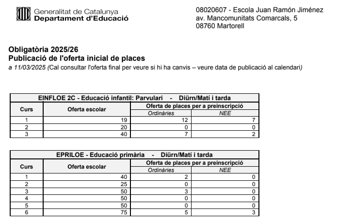 Consulta l’oferta definitiva de places (publicat 16/06/2025)