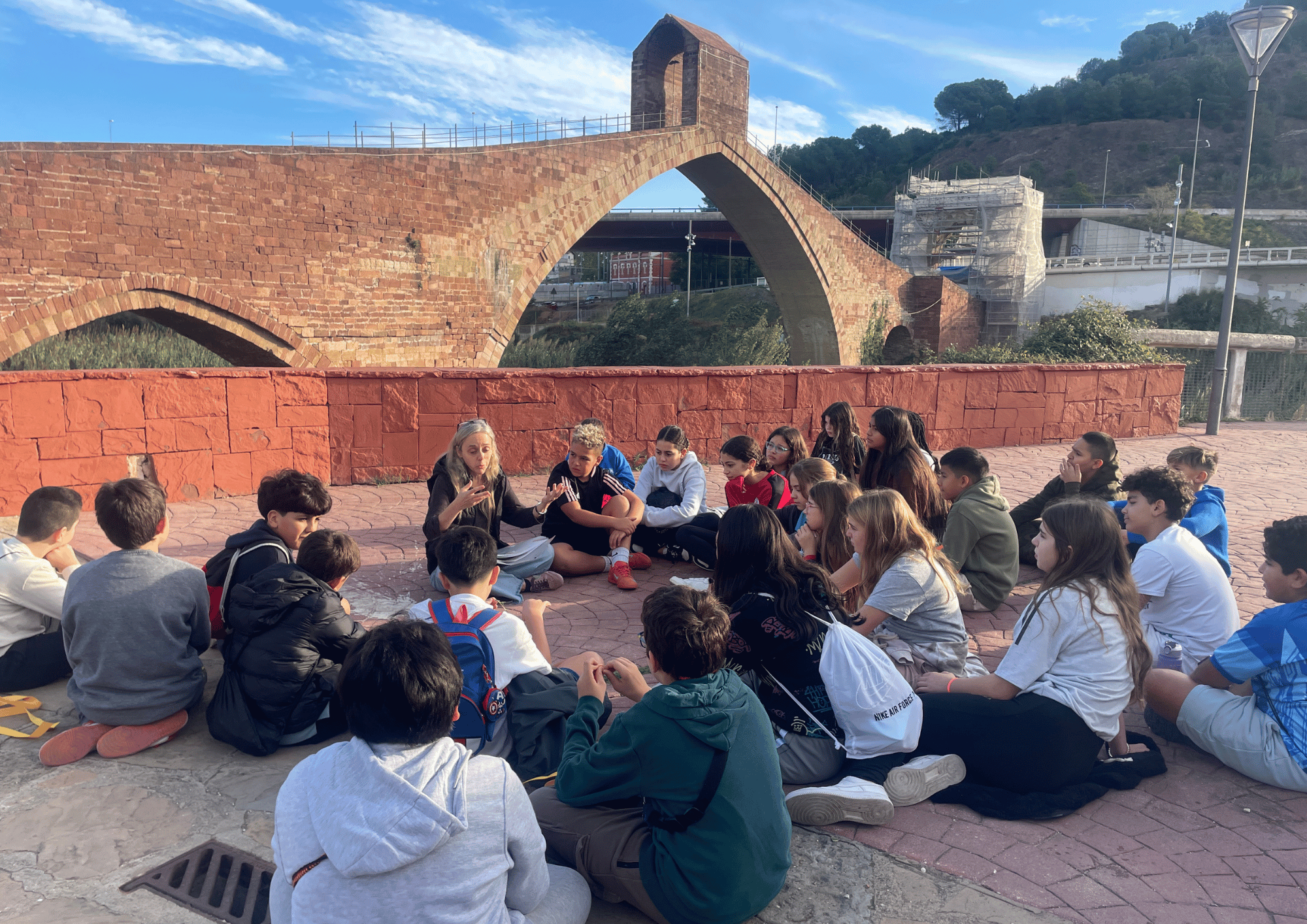 La visita ha començat al Pont del Diable de Martorell, una construcció emblemàtica datada del segle I aC. Aquest pont, que ha perdurat al llarg de més de vint segles, és un testimoni excepcional de l’enginyeria romana i del seu paper en les comunicacions del territori. L’alumnat ha pogut conèixer la seva història, els materials utilitzats per a la seva construcció i les llegendes que l’envolten, tot imaginant com era Martorell en aquella època.