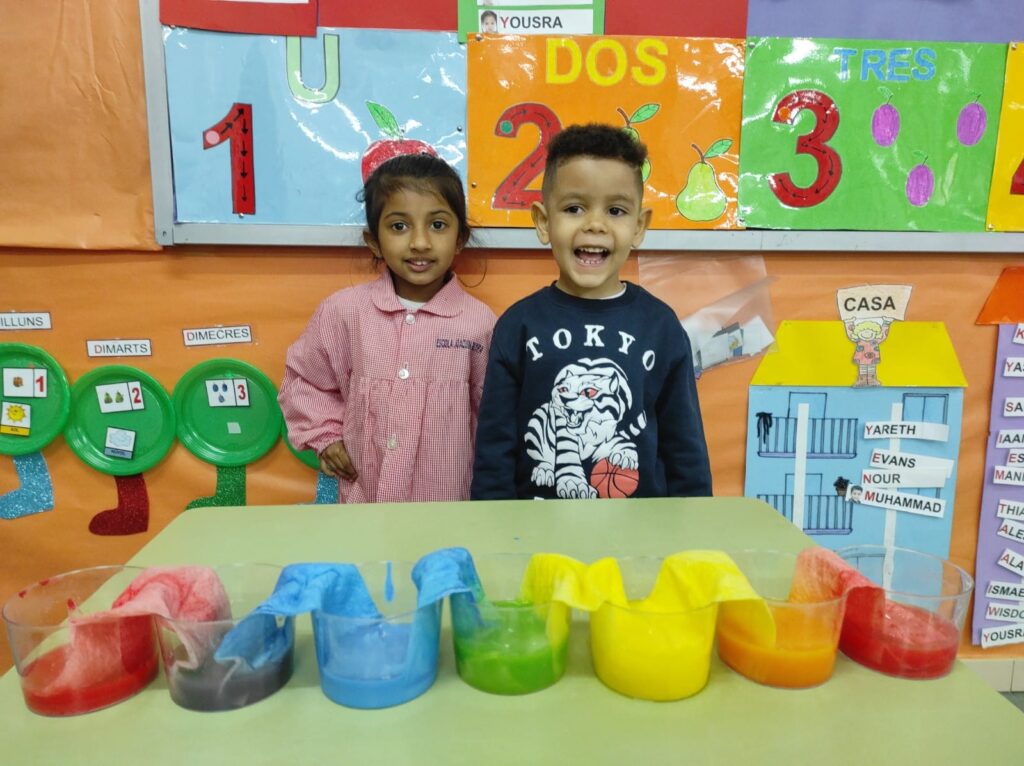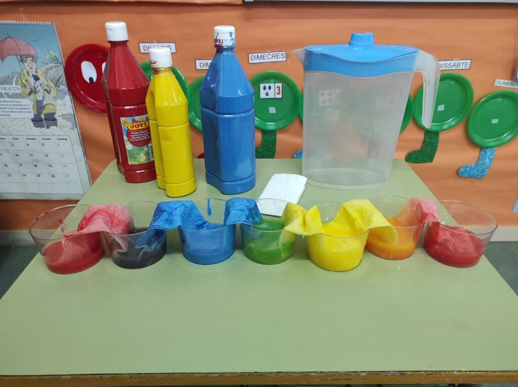 És per aixó que hem decidit fer un experiment, L’AIGUA CAMINA, a la classe i ens ho hem passat d’allò més bé!!