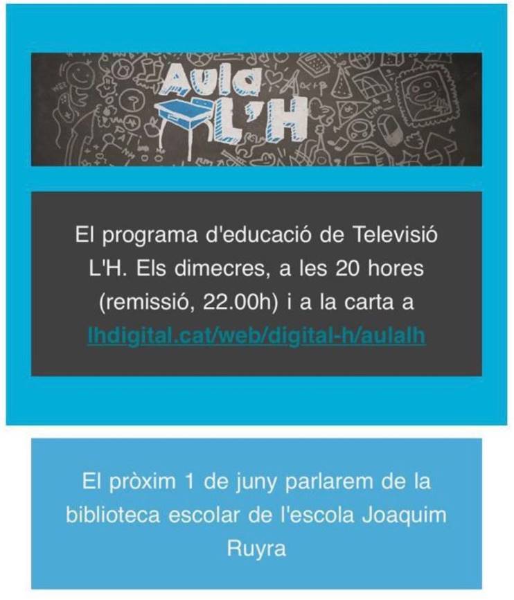 Biblioteca Tutoritzada Miquel Charneco01/06/22 Benvolgudes famílies, Aquesta nit a les 20h, a Televisió de l’Hospitalet, parlarem de la nostra Biblioteca Tutoritzada.