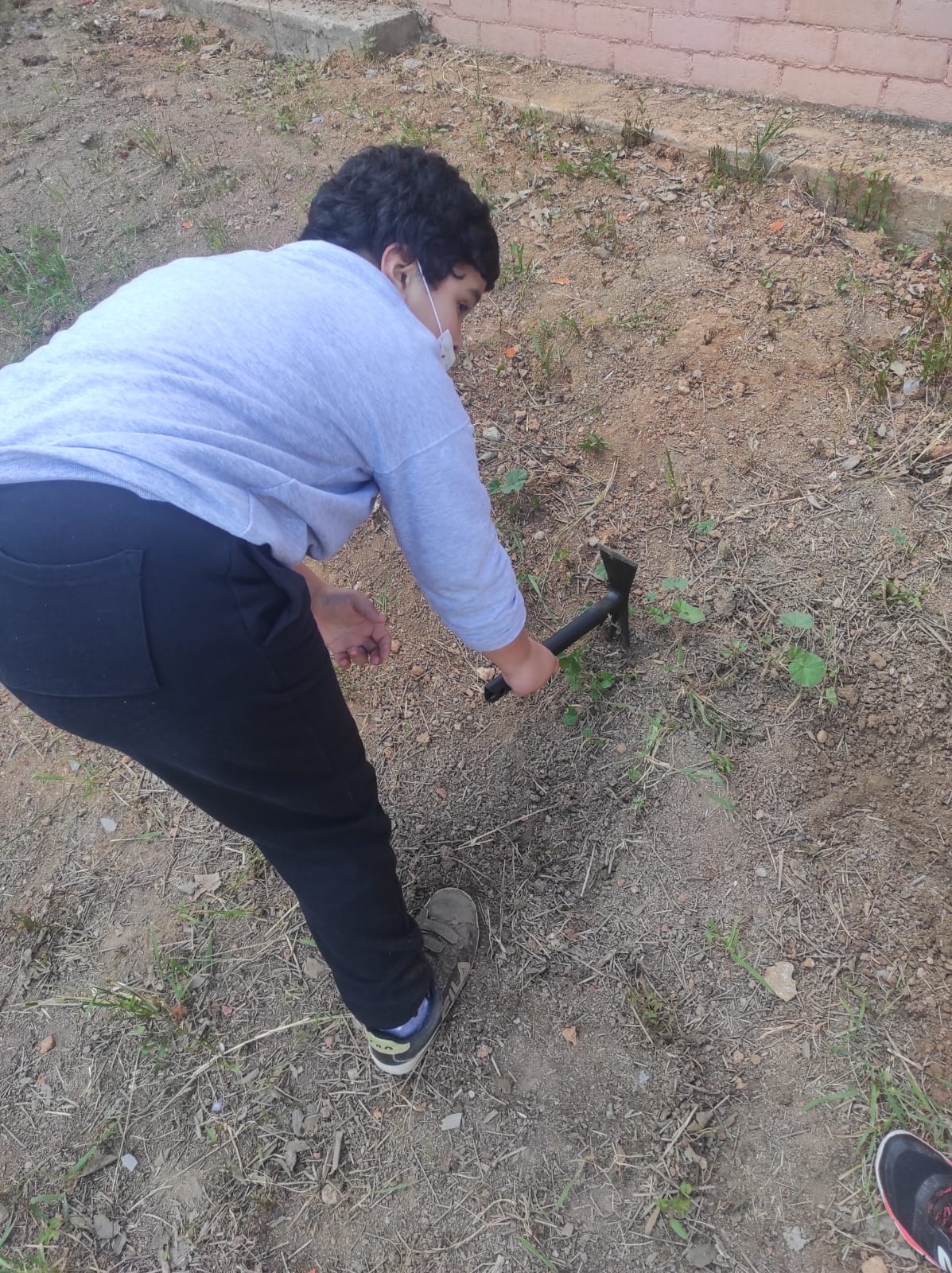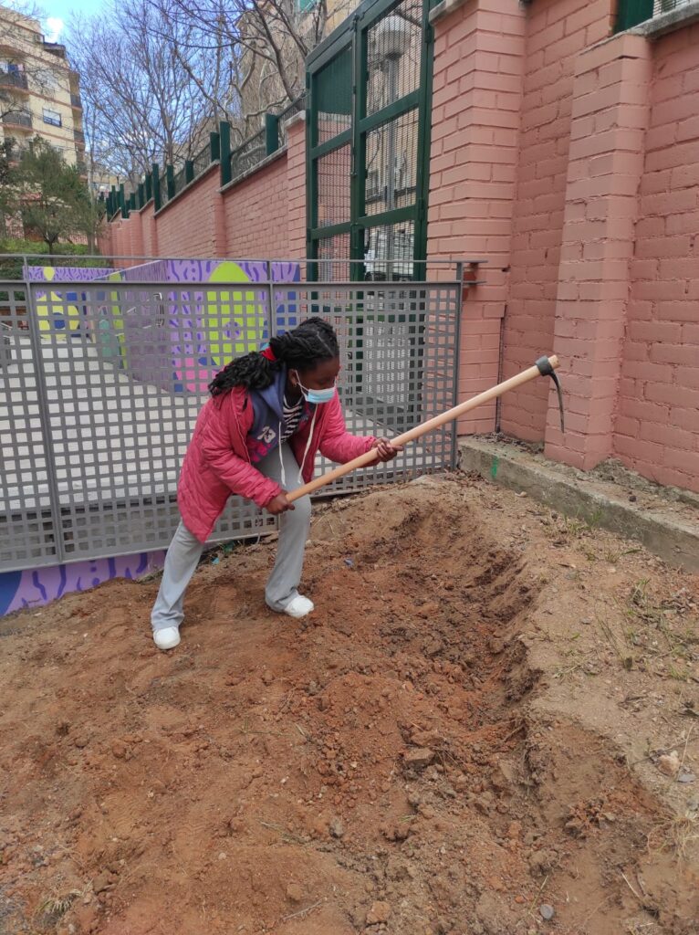 - Potenciar i valorar la importància d’una alimentació sana, consumint hortalisses i fruites, algunes d’elles, plantades a l’hort escolar. Primerament, abans de començar a plantar, entre totes i tots vam remenar la terra de les jardineres per airejar-la i que les arrels s’hi poguessin agafar millor.