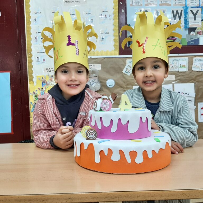 Vam decorar les dues corones, vam cantar el “Cumpleaños feliz“, vam esmorzar una miqueta de xocolata i després vam ballar i gaudit.