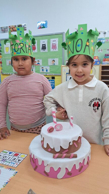 Molt contentes van rebre la seva corona, li vam cantar la cançó d’aniversari i després de rebre moltes abraçades dels companys i les companys van bufar les espelmes del pastís de la classe.