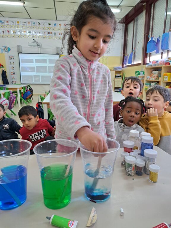 Hem presentat els elements que faríem servir: aigua, colorants, cotó fluix i purpurina i seguint el mètode científic, hem partit de la hipòtesi de si podríem fer una galàxia amb tot això i ficar-la en un pot.