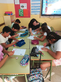 Ja hem començat els grups interactius i utilitzem tota mena de materials, com són els bee-boots, les tabletes, els ordinadors, materials manipulatius per treballar les mesures, i com no, el paper i boli.