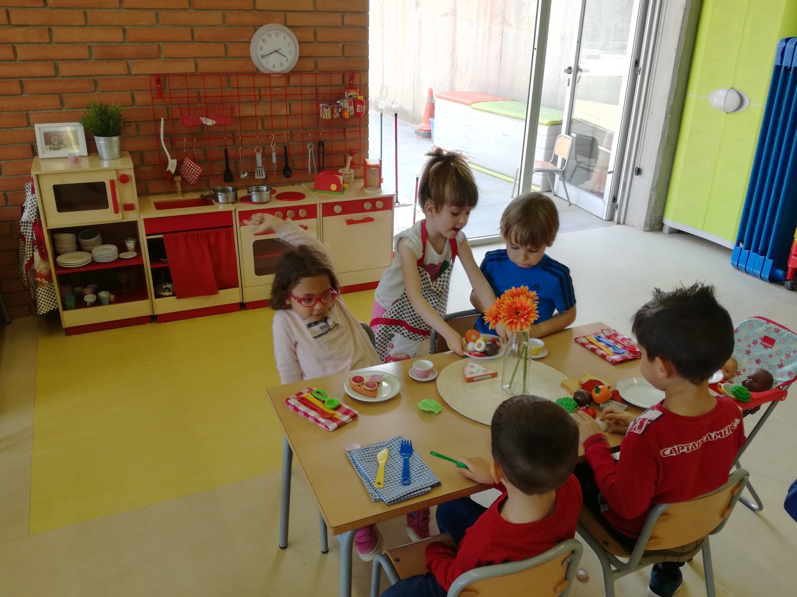 Racons Internivells, on els nens de P3, P4 i P5 estan tots barrejats pels diferents espais d’infantil. A cada aula es troben diferents propostes (pintura, fang, aquarel·les, racó de la cuineta, racó de metges, jocs de taula…) i ells poden escollir lliurement on volen anar, sempre respectant el nombre màxim de nens a cada racó. Els nens que han fet alguna obra d’art en algun del seu racó s’ho emporten a casa el mateix dia i així  ho poden explicar.