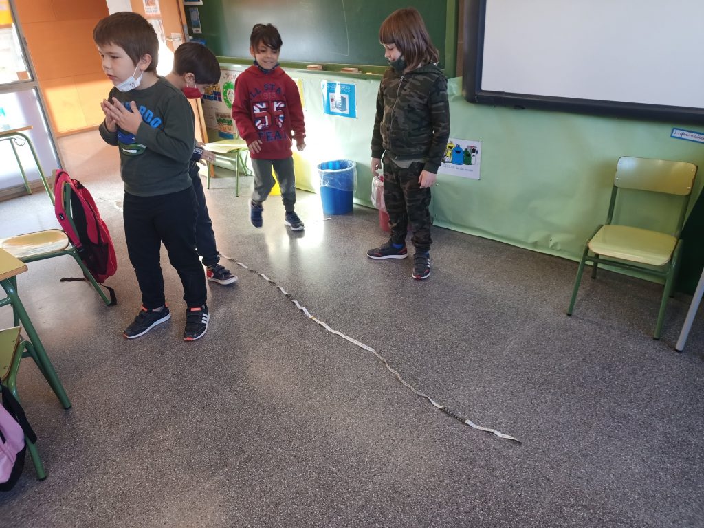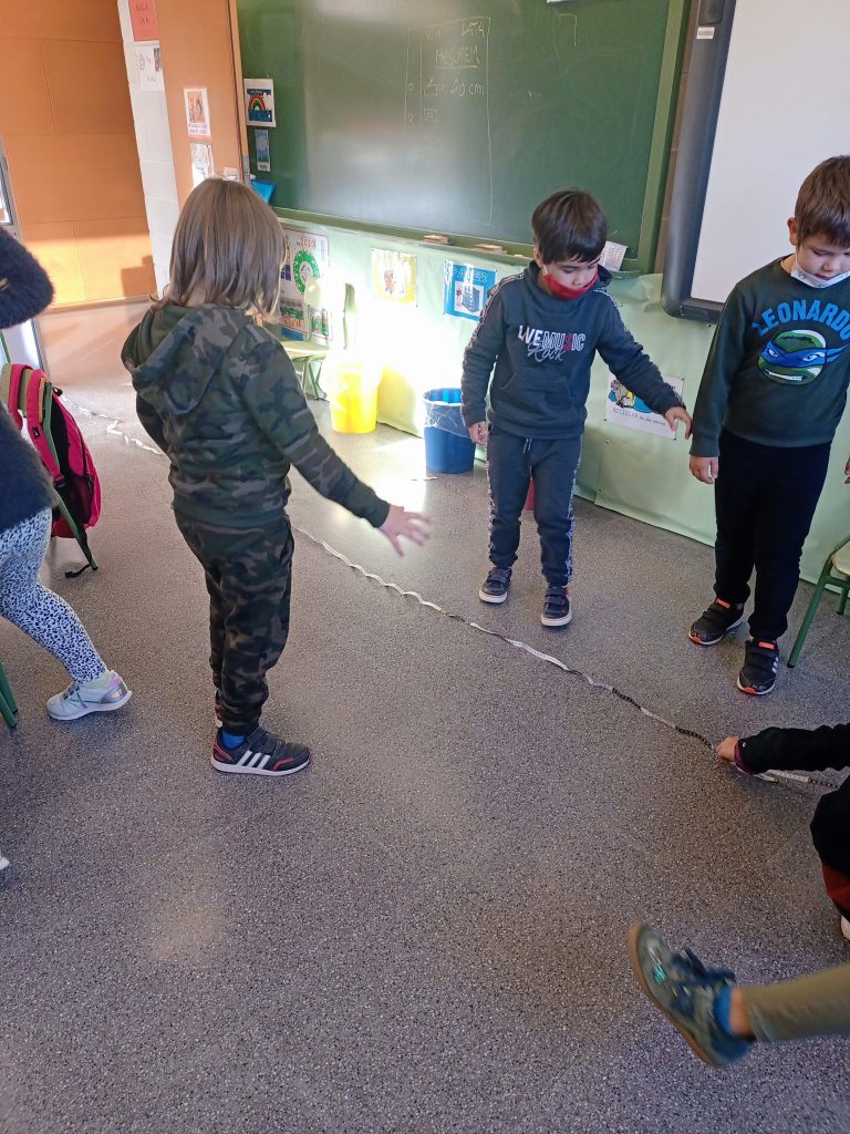 Com volíem saber mesurar més, l’Aisha ens ha donat un metre a cada nen i nena i hem començat a medir coses de la classe.
