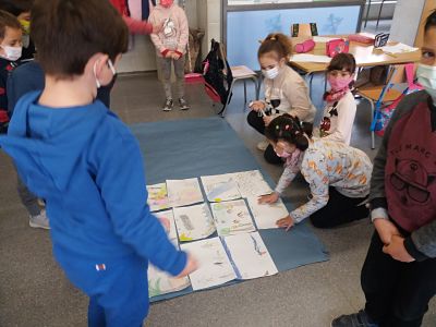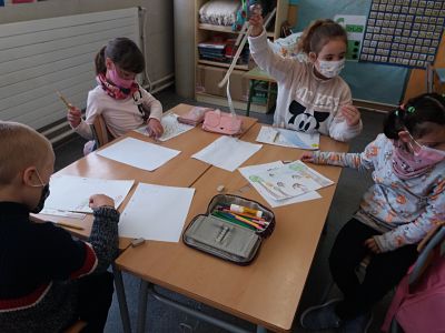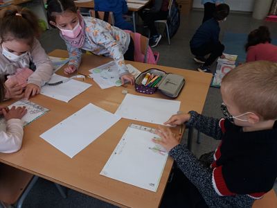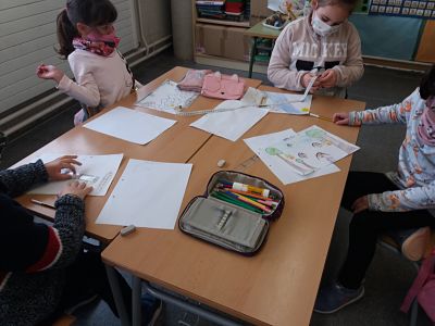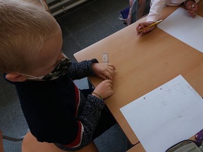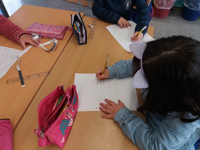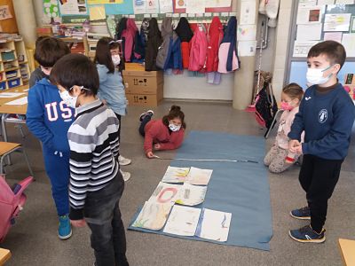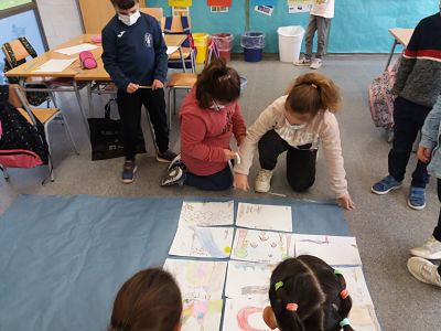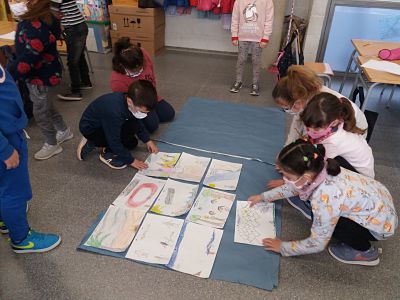 El dimecres es va plantejar un problema a classe: Havíem d’esbrinar la mida a la que la mestra havia de tallar un paper, perquè encabissin 11 dibuixos que havíem fet. L’única pista va ser que ens va donar un regle a cadascú i una cinta mètrica per equip. Ens va dir que podien fer-los servir…. O no. I també que qualsevol forma de fer estaria bé, si tothom arribava a la mateixa solució. Alguns/es vam començar amidant el full amb regle, d’altres amb el metre. Més tard a algú se li va ocórrer posar uns dels dibuixos al paper continu. La resta del equip va fer el mateix. Després es van anar demanant ajuda els uns als altres, per al final resoldre el problema entre tots els infants de la classe.