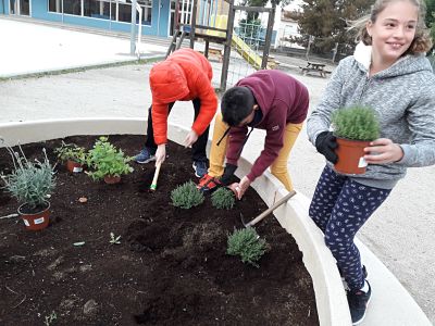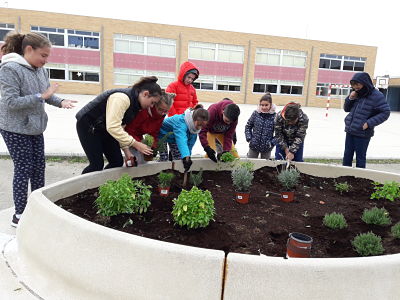 Els i les alumnes del grup de SEP d’ampliació han plantat plantes a la jardinera que l’ajuntament va instal·lar al pati de primària. Aquest espai l’hem anomenat “La Jardinera Aromàtica”. De moment hem plantat romaní, farigola, espígol, menta i julivert. Properament en plantarem d’altres.